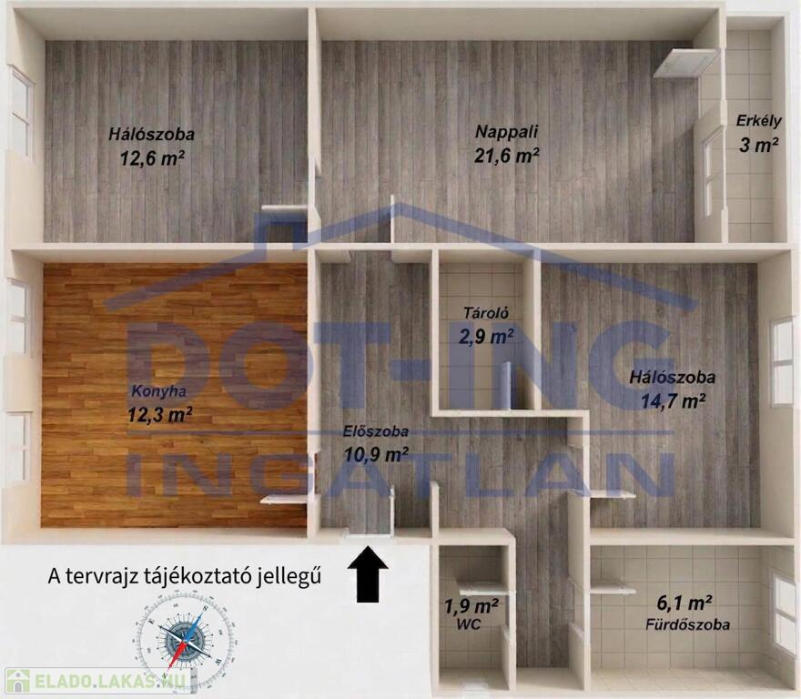 Tágas terek és méret: 83 nm-es alapterület, 3 szobás, rendkívül praktikus elrendezésű lakás, amelyet hatalmas, jól kihasználható, világos terek jellemeznek.