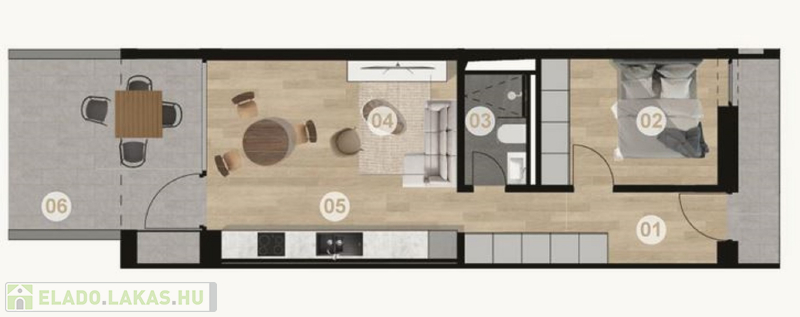 - A lakásokban egységesen laminált padló kerül kialakításra (kivéve WC, fürdőszoba és