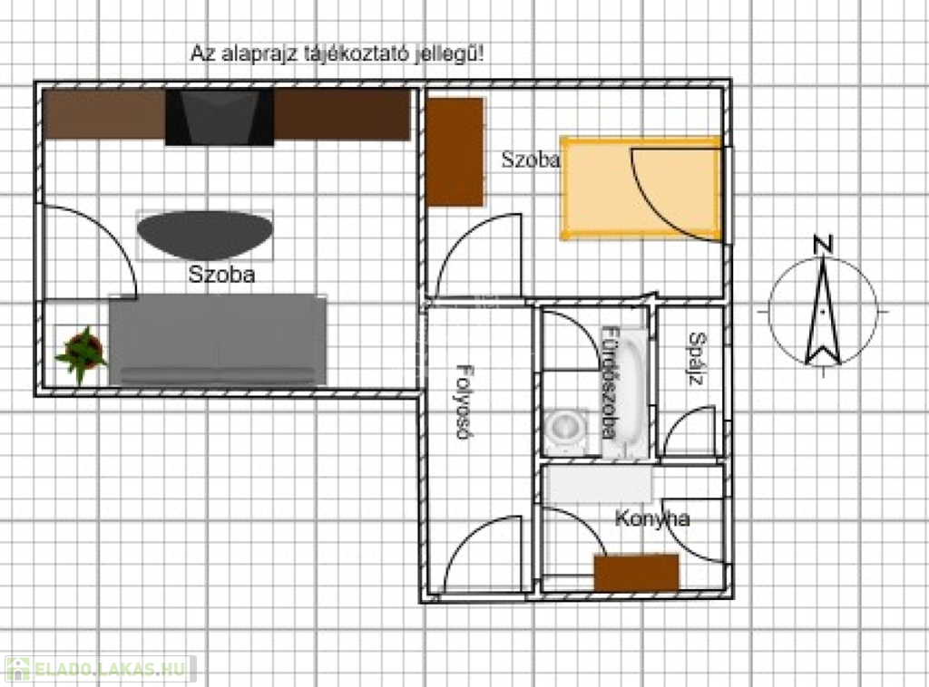 Az ingatlan két különálló szobával, konyhával, folyosóval, kádas fürdőszobával és spájzzal rendelkezik.