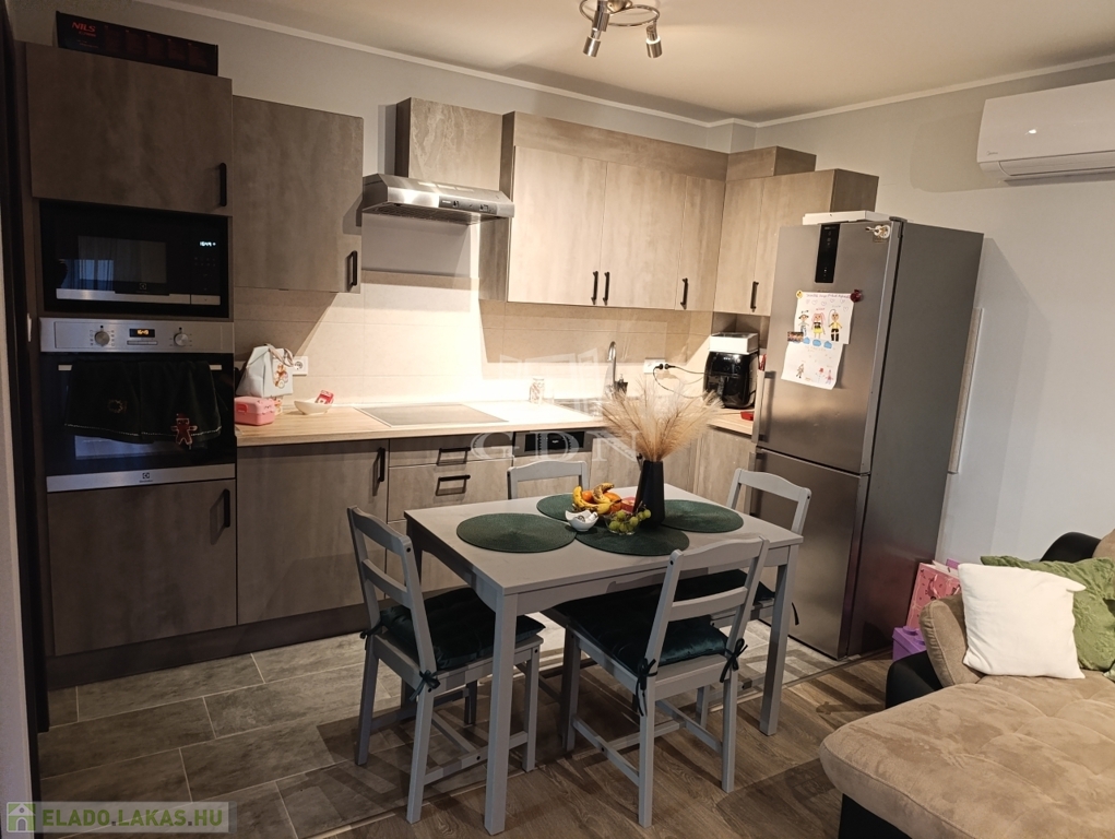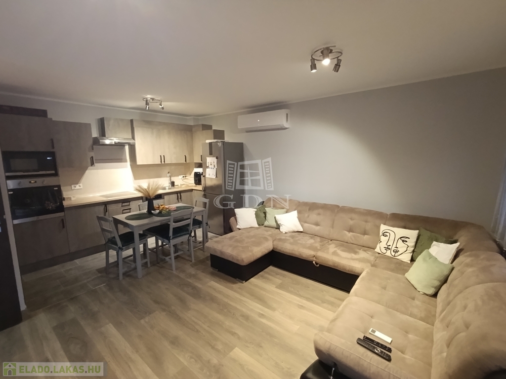 Eladásra kínálunk egy 2024-ben épült 61 m²-es, földszinti, 2 szobás, kertkapcsolatos lakást, amelyhez 19 m²-es, saját garázs is tartozik.