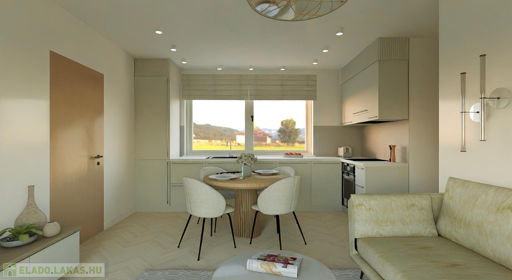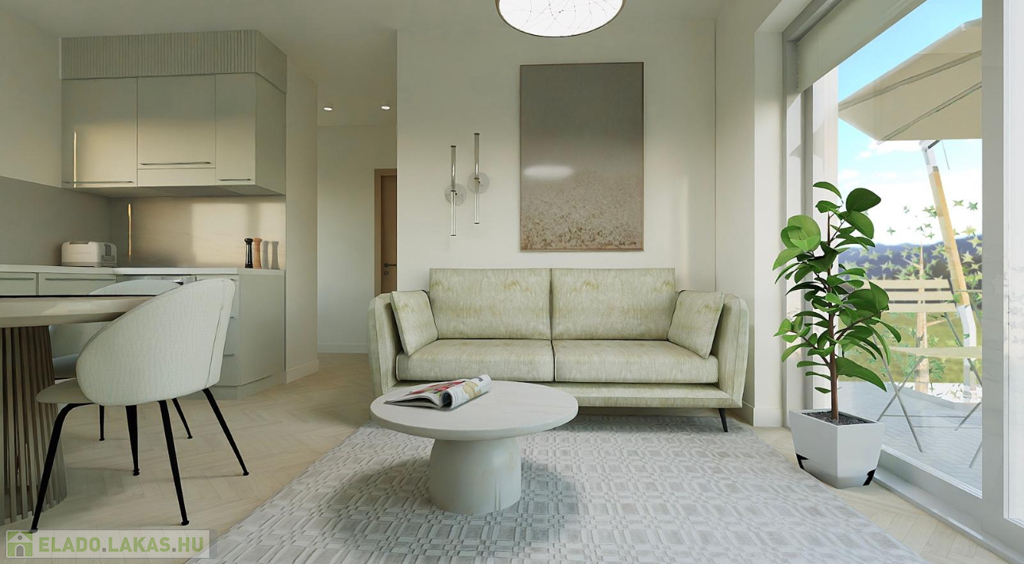 Eladó Balatonalmádi egyik legkedveltebb, zöldövezeti részén egy 51,38 m²-es, modern földszinti apartman egy újépítésű társasházban.