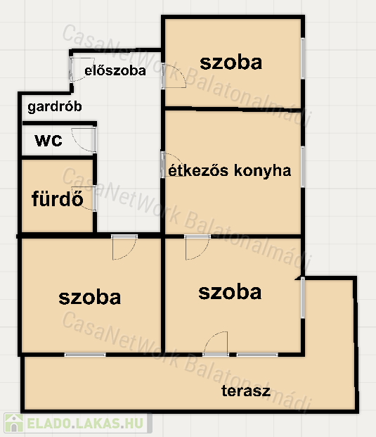 -71 nm-es, 2+1 szobás, tágas étkezős konyhával