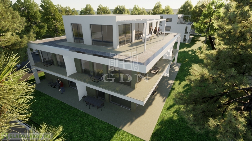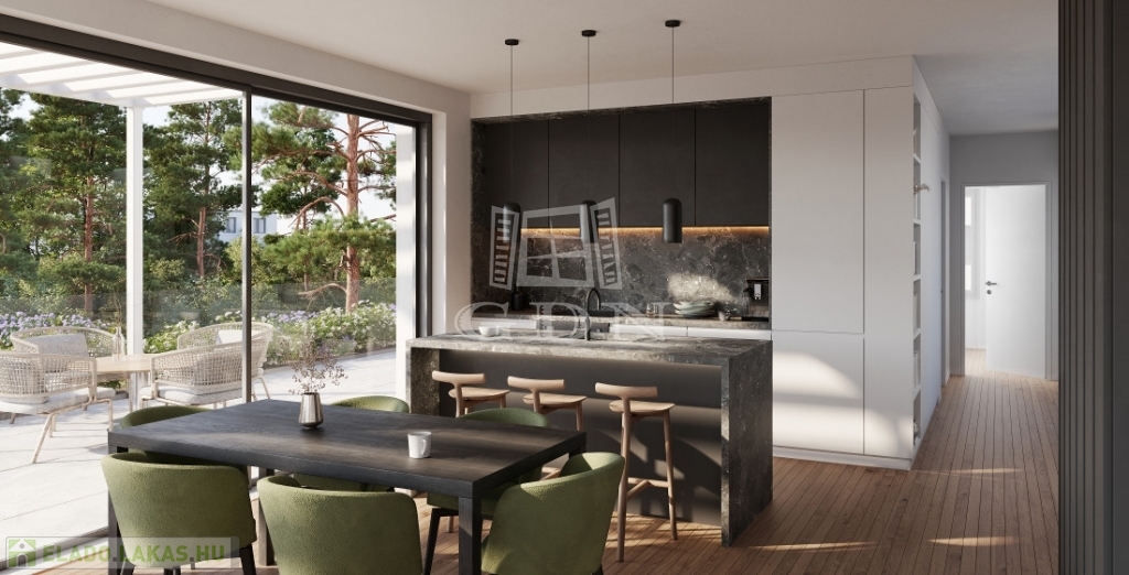 A LAKÁS az első emeleten található. 73 nm lakótér, 30 nm terasz. Amerikai konyhás nappali, 2 hálószoba, fürdőszoba, WC.