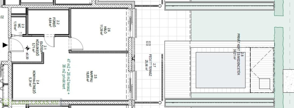 A földszinti lakásokhoz különböző alapterületű, kizárólagos használatú kertek tartoznak, melyeket kertépítészeti eszközök határolnak el a park-szerűen kialakított, közös használatú kertrészektől. Mind a közös, mind a kizárólagos használatú kertek növényzettel telepítettek.