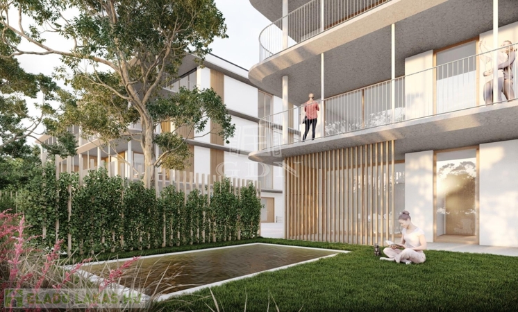 A lakásokhoz mindegyik szárnyon burkolt kialakítású lapos tetős teraszok készülnek. A földszinti lakásokhoz a teraszok mellett magánhasználatú kertrészek is csatlakoznak, a harmadik emeleten pedig épületszárnyanként 2-2 lakáshoz egy saját használatú zöldtetős tetőterasz is kapcsolódik. Zöldmezős beruházás, de a városépítészeti koncepció szerint a területre egy többemeletes, társasházas építészeti környezet lesz jellemző, amibe a tervezett épület is illeszkedik.