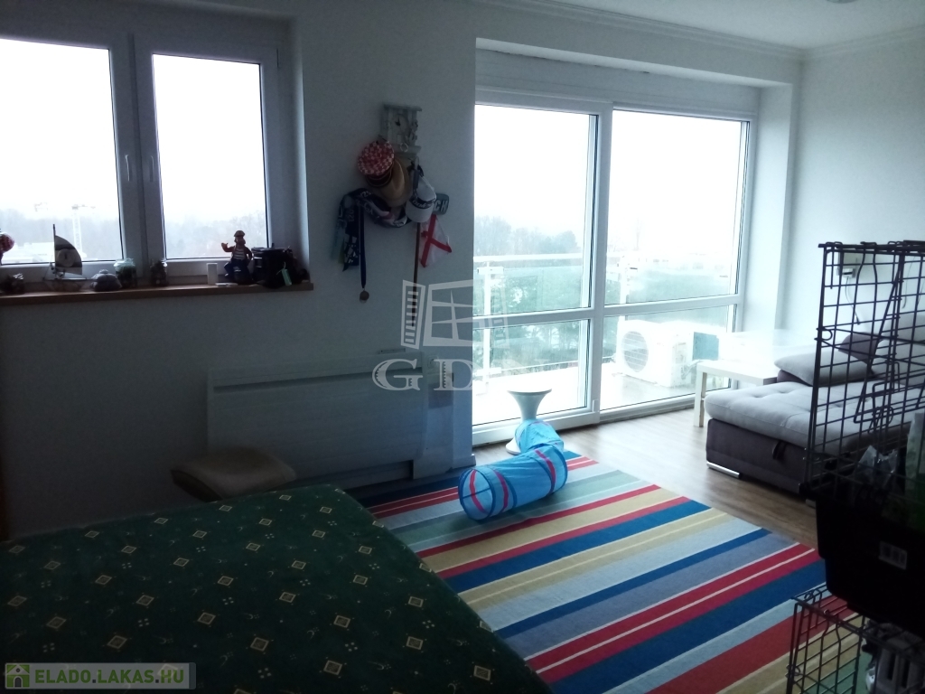 Az ingatlan a ház legfelső emeletén helyezkedik el. Konyha, közlekedő és nappali, fürdő és wc, valamint egy a nagyon világos nappaliból nyíló terasz helyiségekből áll. Az épület természetesen liftes, gondozott parkkal övezett. A tulajdonosok kikapcsolódását saját ÚSZÓMEDENCE és TENISZPÁLYÁK is szolgálják.