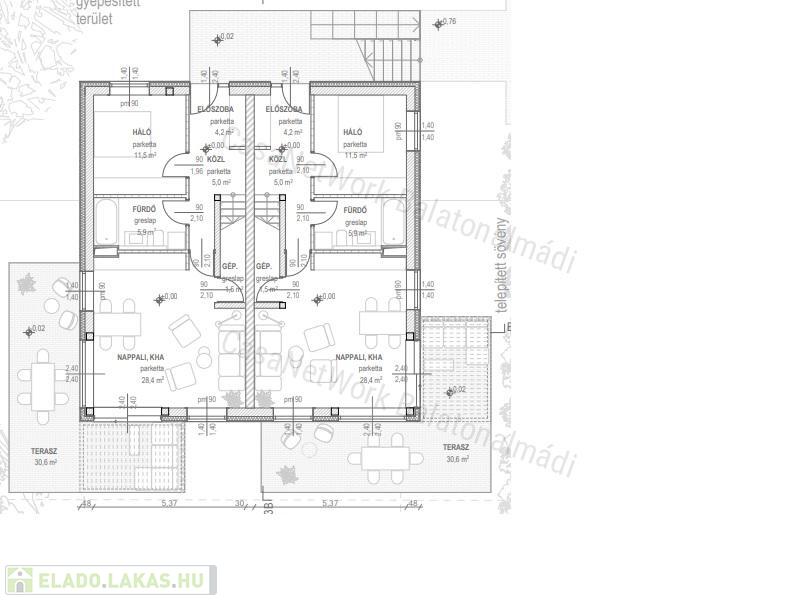 - a lakások mindegyike terasszal és cc. 200 m2-es kerttel rendelkezik
