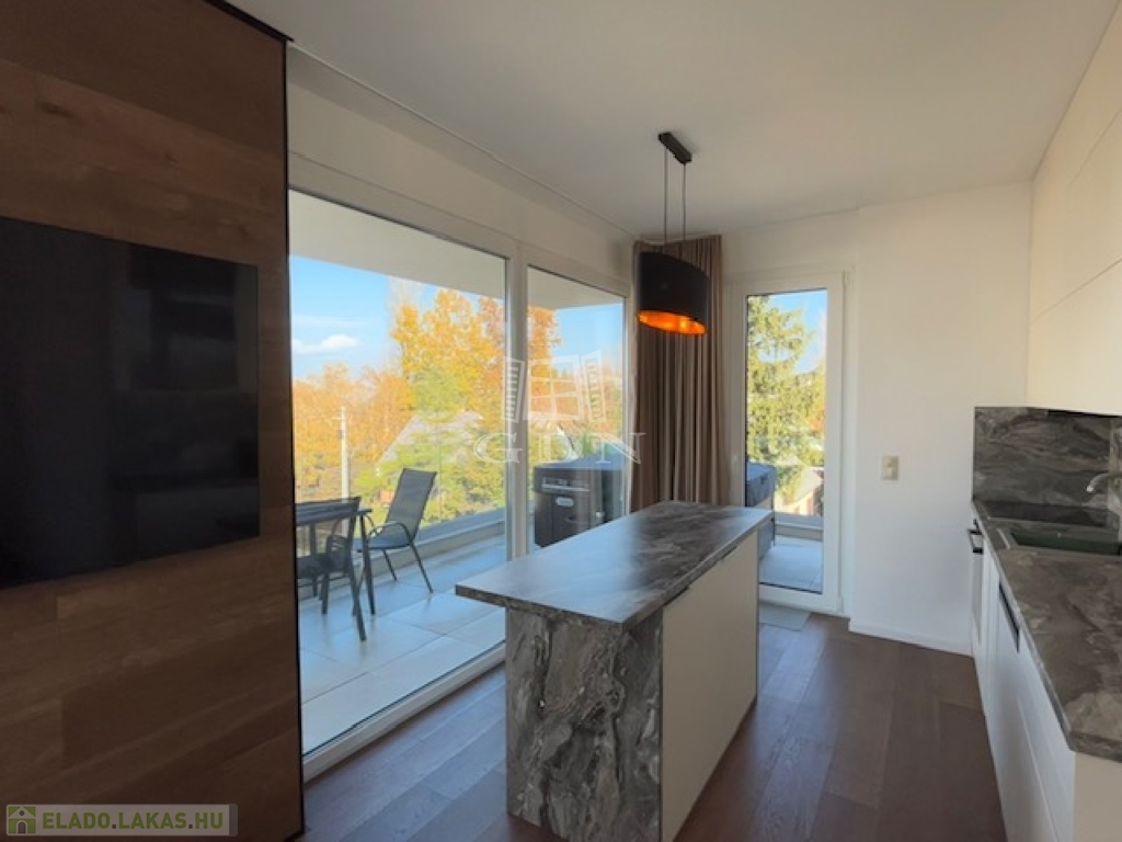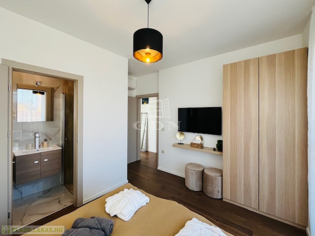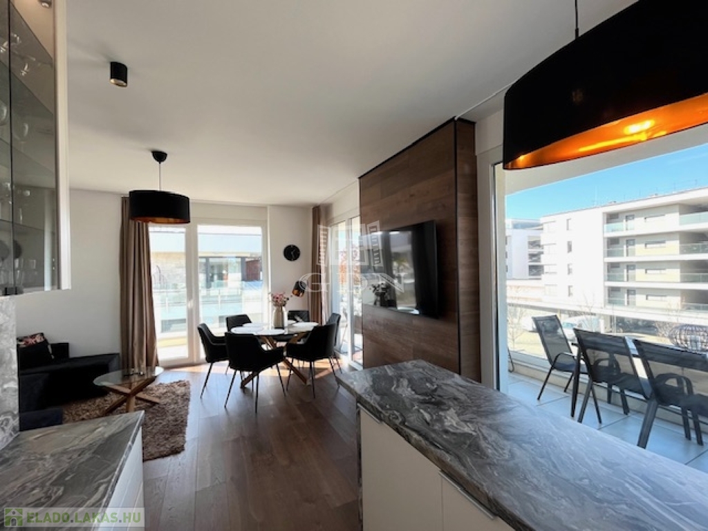 Az exklusív lakóingatlan elegáns nappali életteret, valamint kettő hálószobát és két fürdőszobát kínál a maximális komfortérzet biztosításához. A körpanorámás terasz pedig minden lehető luxust biztosít használói számára, s a teraszon bőven elférnek a szauna,a jakuzzi, valamint az étkezést és a pihenést szolgáló bútorok is.