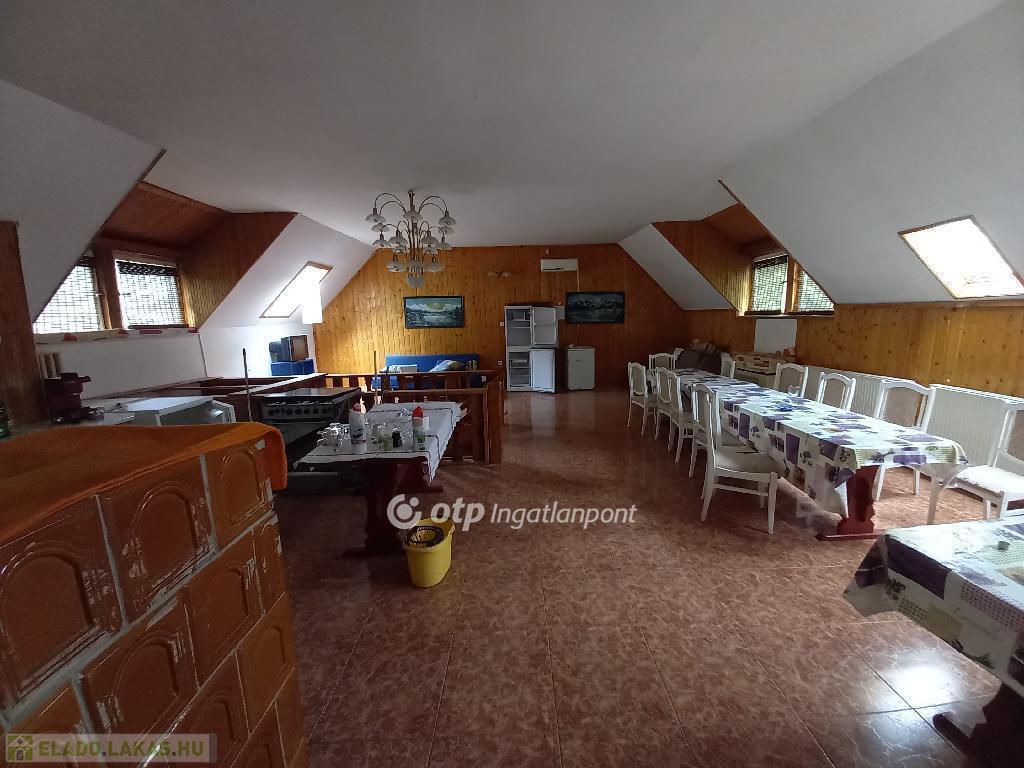 Balaton déli part, Balatonmáriafürdőn eladó egy partközeli étterem tetőterében kialakított 197 m2-es lakás. Külön bejáraton közelíthető meg, parkolni az utcán lehet. Fűtése gázkazánnal és radiátorokkal került kialakításra. A nappali/konyhán kívül 6 szoba található benne, mindegyik külön fürdőszobával. Az épület felújításra szorul.