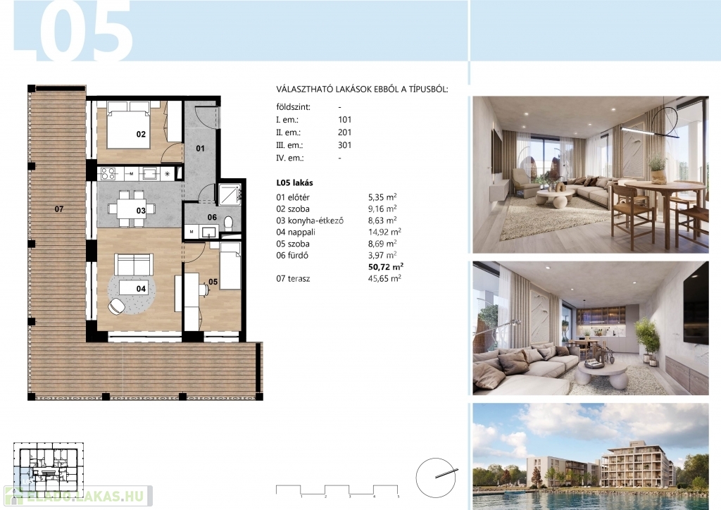 50 nm-es, 3 szobás, 45 nm-es terasszal, elismert szakmai háttérrel rendelkező tervezőiroda által megálmodott lakás, kulcsrakész, 2026 márciusban történő átadással eladó.