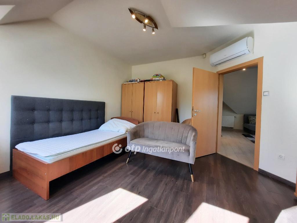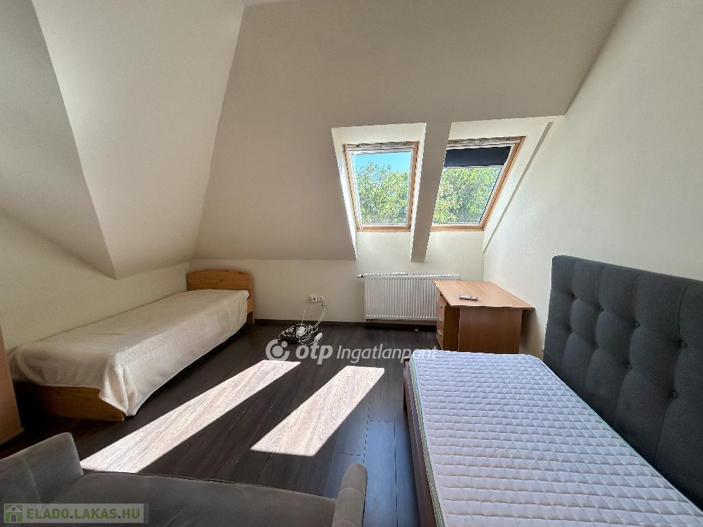 A helyiségeket minőségi burkolatok jellemzik: a hálószobákban laminált parketta, míg a többi helyiségben feszültségmentesítő réteggel ellátott kerámialap található. A tetőtéri ablakokon napelemes, távirányítós redőnyök biztosítják az árnyékolást, a műanyag nyílászárók pedig redőnnyel és szúnyoghálóval felszereltek. A lakás esztétikailag és műszakilag is kiváló állapotban van: új, falba süllyesztett vezetékek, energiatakarékos LED világítás, üvegszálas tapéta, beépített Geberit WC, valamint riasztórendszer távfelügyeleti csatlakozással garantálják a modern kényelmet. A lakáshoz kocsibeálló tartozik.