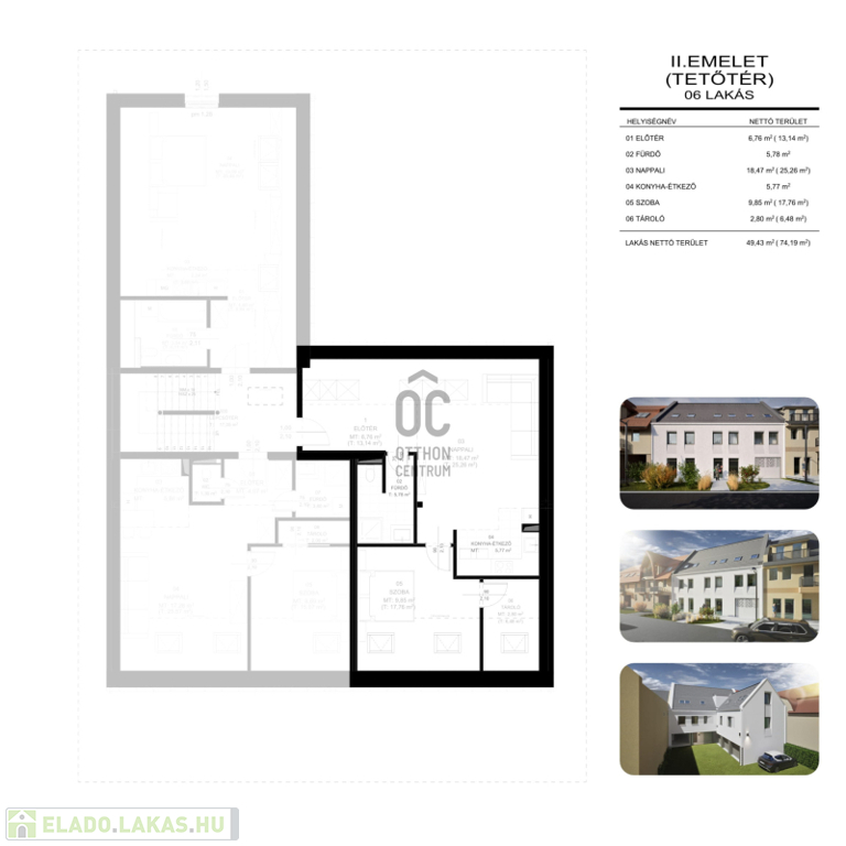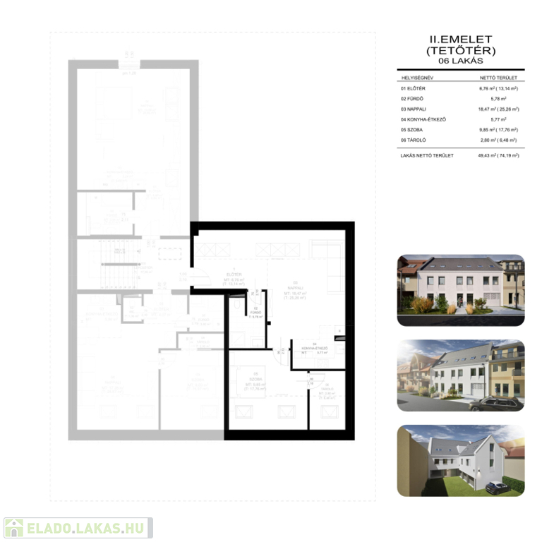 -nettó 50 m2, bruttó 75 m2 lakótérrel