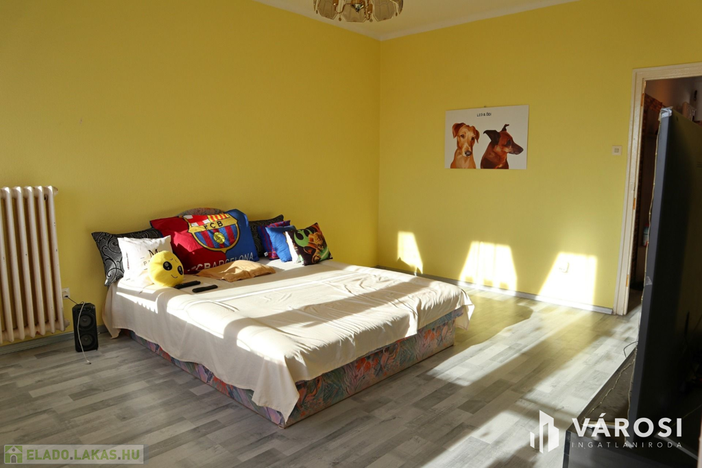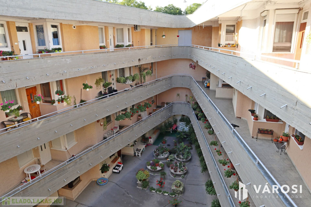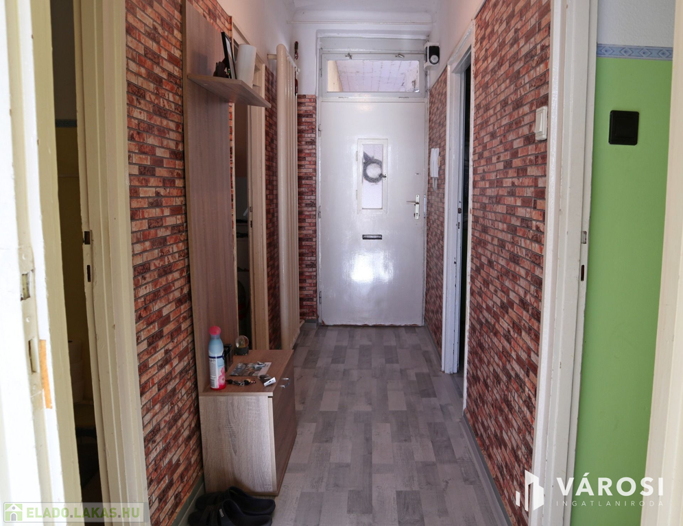 Eladásra kínálom Békés központjában a Széchenyi téren található IV. emeleti 71 m2-es tégla építésű lakást, mely a lakóépület zárószintjén helyezkedik el. Az ingatlan elmúlt évek során nagyobb felújításon nem esett át, a villanyvezetékek és a helyiségek burkolatainak cseréjét kivéve, de folyamatosan karbantartott, jó állapotú. A társasház tetőszerkezetének hőszigetelése a közelmúltban megtörtént. A 2 erkélyes lakásba, tiszta lépcsőházon és függőfolyosón keresztül juthatunk, ahonnan pazar kilátás nyílik Békés belvárosára. A fűtésről a lakótömbben található központi gázkazán gondoskodik, így a rezsiköltség is igen kedvezően alakul.