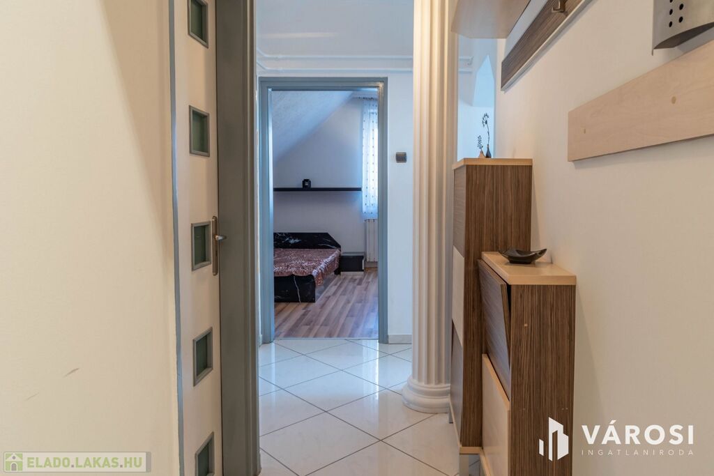 Eladásra kínálom Békéscsaba belvárosában, rendezett, 1991-ben épült társasház 4. emeletén található, téglaépítésű tetőtéri lakást.