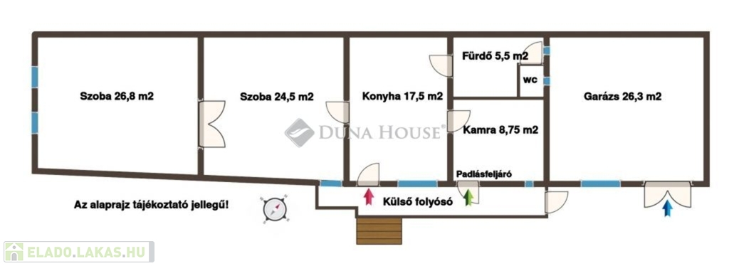 - két szoba (26,8 és 24,5 nm);