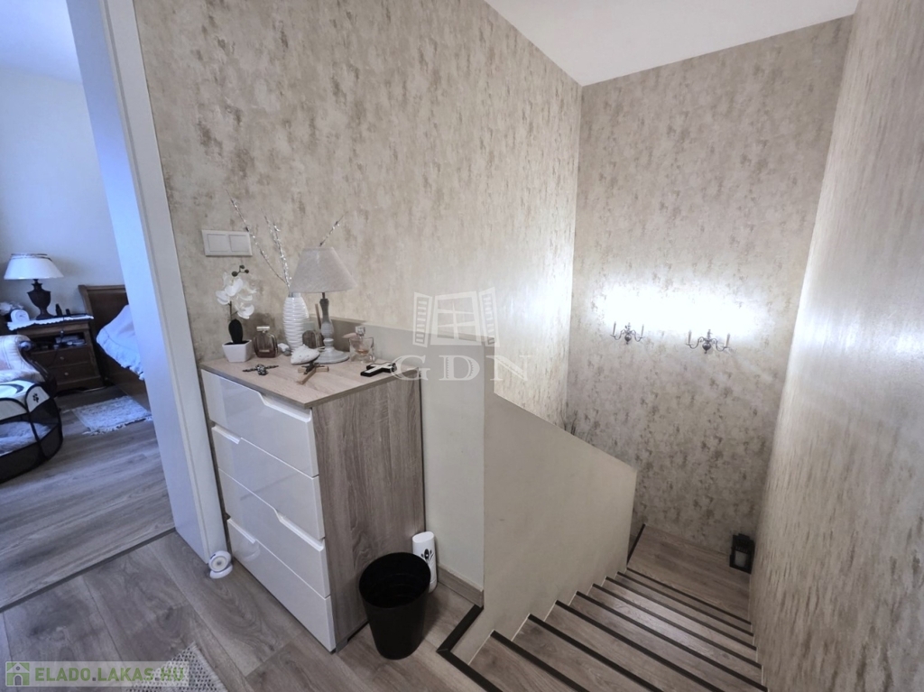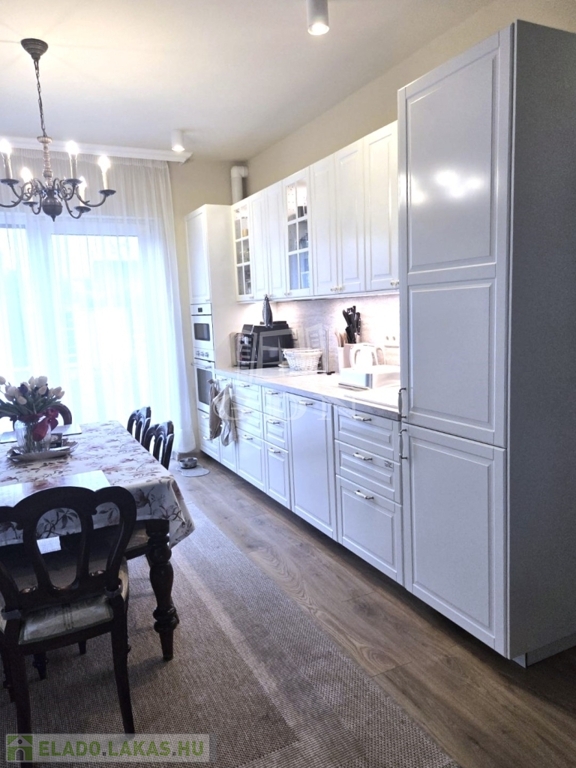 Eladó egy elegáns téglaépítésű lakás Biatorbágy központjában, ami inkább egy ikerház jellegű sorház – saját, elkerített, 182 m²-es kerttel és hátsó terasszal, ahol garantált a nyugalom és a privát tér.