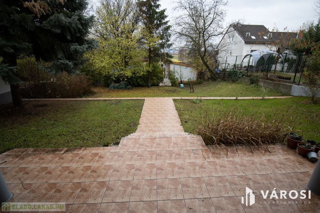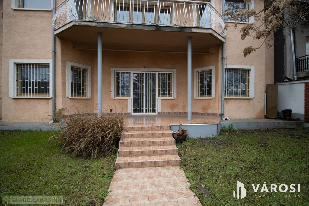 Az ingatlan elhelyezkedésének köszönhetöen, néhány lépcsőt lefelé kell menni a lakás megközelítéséhez, mivel az az alsó szint, de cserébe az egész kert, terasszal a lakáshoz tartozik kizárólagosan.