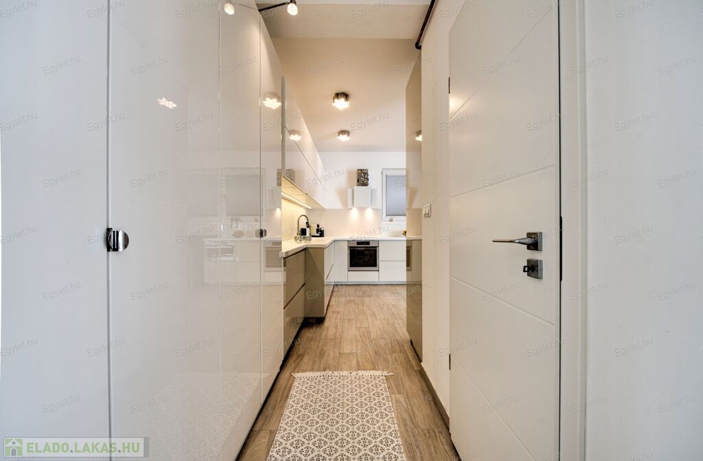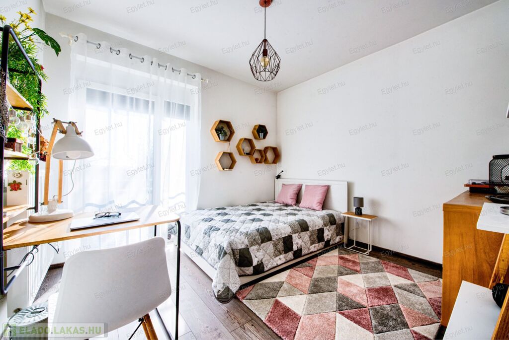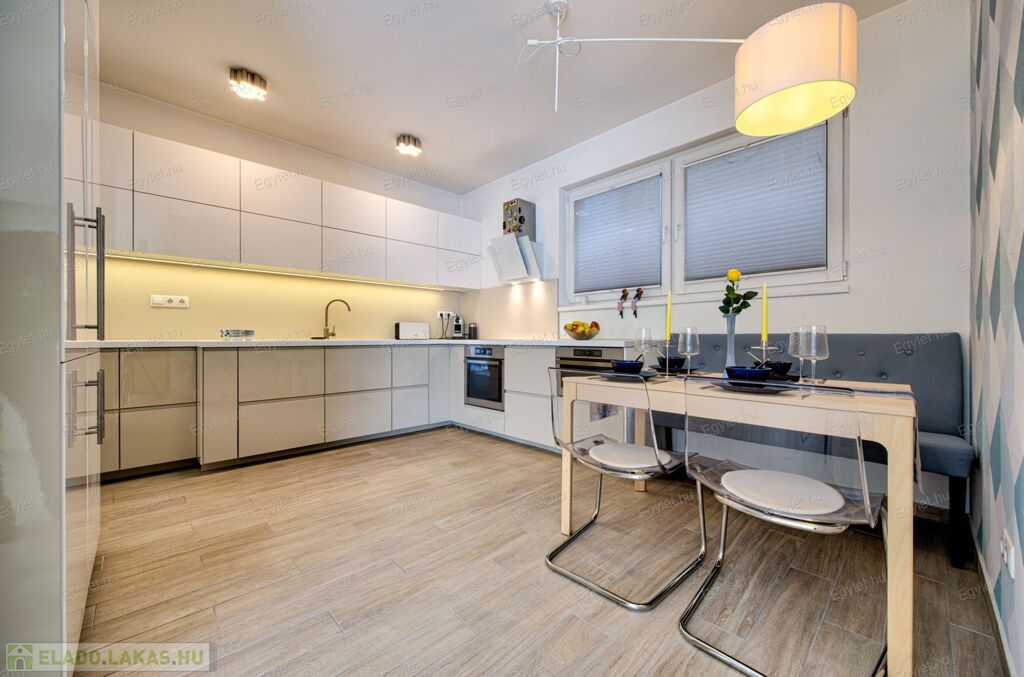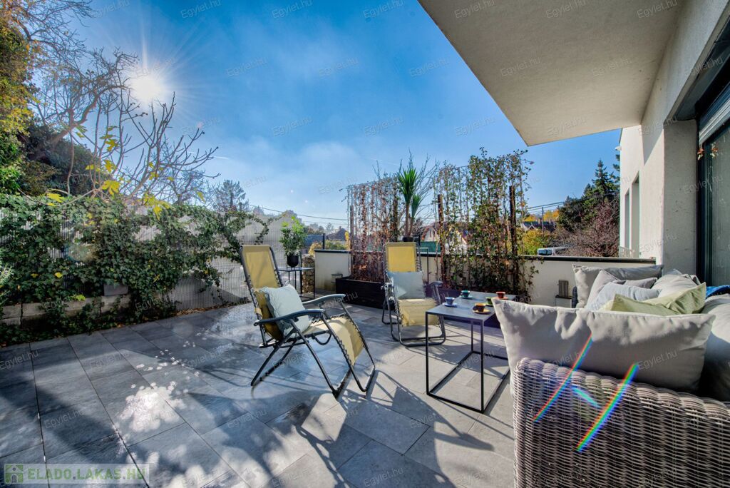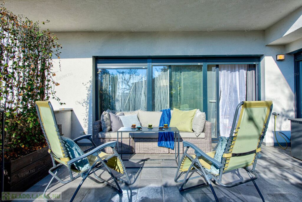 Budaörs szívében a Kápolnás-hegy lábánál, csendes aszfaltozott utcában, 116 m2-es, nappali + 3 hálószoba elrendezésű lakás, igényes új tulajdonosát várja. A 2018-ban épített mindössze 3 lakásos, kétemeletes szigetelt téglaépület földszintjén elhelyezkedő társasházi lakás impozáns 31 m2-es teraszkapcsolattal rendelkezik. A terasz területe részben sincs beszámítva a tulajdoni lapon található hasznos alapterületbe. Az újszerű lakás elrendezése élhető, az intim és a közösségi terek jól elkülönülnek egymástól. A komfortfokozat duplakomfort, hiszen a szülői és a gyermek lakrész is rendelkezik fürdőszobával, WC-vel. A szobák laminált parkettával, míg a többi helyiség járólappal burkolt. A ház fűtését és melegvíz ellátását kondenzációs gázkazán látja el, a túlmelegedés ellen saját split klíma véd, a biztonságról távfelügyeletre kötött riasztórendszer gondoskodik. A közös költség 20.000 Ft, a fűtésátalány mindössze 11.000 Ft. Az esztétikus konyhabútor és a beépített szekrények a vételár részét képzik. A lakáshoz tartozik egy mélygarázsi beálló, melynek értéke további 10.000.000 Ft és kötelezően megvásárlandó. Az ingatlan tehermentes, piaci hitellel hitelezhető, de vételára miatt az Otthon Start Programban nem tud részt venni. A környék közlekedése és infrastruktúrája jó: közlekedési csomópont 6 perc sétára, bölcsöde szintén 6 percre, iskola, óvoda 15 percen belül elérhető gyalogosan, bevásárlóközpont 10 percnyire gépkocsival. Mindent összevetve, ez az igazán „beleszeretős”, nívós lakás igazi otthont nyújt minden korosztálynak, akinek fontos a csend, a rendezett, nyugodt, biztonságos környezet, és fontosak a jószomszédi kapcsolatok. A hirdetéshez csatolt fotók, 3D séta, illetve videó megtekintését követően a felmerülő kérdések kapcsán felkészülten várom hívását a hét minden napján.