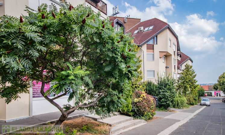 A társasház maga nem liftes, de szép külső és belső állapota van, belső kertekkel tagolt, ami barátságos és nyugodt környezetet teremt a lakók számára. A lakáshoz egy körülbelül 6 nm-es pince-tároló is tartozik, amely további tárolási lehetőségeket biztosít. A közös költség 25.000 Ft/hó, ami tartalmazza a közös területek karbantartását és a kertgondozást is.