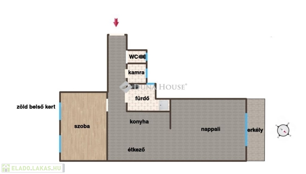Első emelet, jól megközelíthető sarokelhelyezkedés, külön WC, praktikus alaprajz reprezentatív, mégis barátságos térrel.Ez nem egy majd egyszer jó lesz típusú ingatlan.