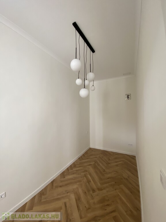 A 2. emeleti, liftes házban található ingatlanban amerikai konyhás nappali, két külön nyíló szoba, külön fürdő és WC található. A felújítás 2025-ben történt, új gépészet, nyílászárók, padlófűtés (Viessmann kazán), klíma- és riasztó előkészítés is megtörtént.