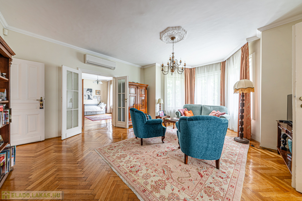 A villaépület másik, emeleti lakása is eladó (+tetőtér beépítési lehetőséggel), így egyben a teljes ingatlan tökéletes választás lehet akár többgenerációs családi rezidenciának a szeparálódás lehetőségével, vagy befektetési céllal - társaházként - lakásonként hasznosítva, ill. cégközpont, nagykövetség vagy magánklinika helyszíneként.