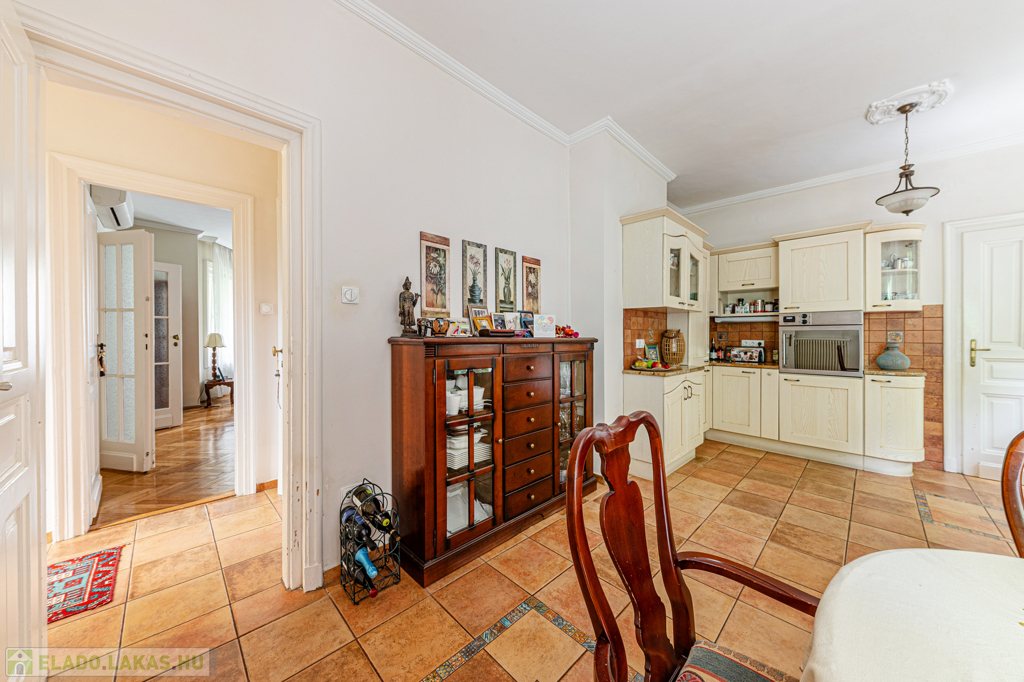 Az átmenő forgalomtól mentes utcában található, 1930-as években épült villa renoválása során tulajdonosai megőrizték az épület eredeti báját, környezetében hasonlóan patinás családi villák és kis létszámú társasházak látványa a jellemző, a lakás 2006-ban történt teljeskörű felújításakor is megmaradt az ingatlan korhű jellege. A modernizált lakásban az eredeti külső- és belső nyílászárók felújításra kerültek, az ablakok hőszigetelést kaptak, árnyékolóként spaletták szolgálnak; a teljes vezetékrendszert kicserélték, a radiátoros fűtésről és használati melegvíz-ellátásról Vaillant fali kazán gondoskodik; igény esetén kandalló telepítésére is adott a lehetőség; az ingatlanban klíma került beépítésre; a lakóknak távfelügyeletbe kötött riasztó rendszer nyújt biztonságot.