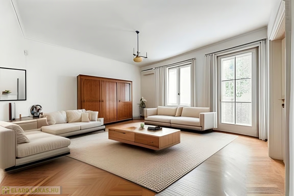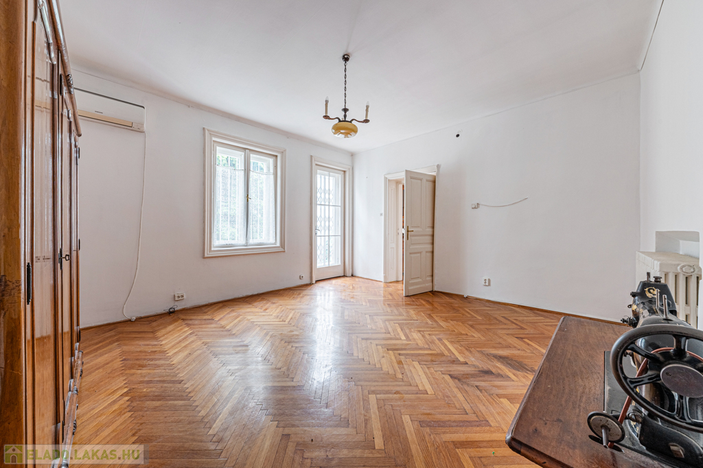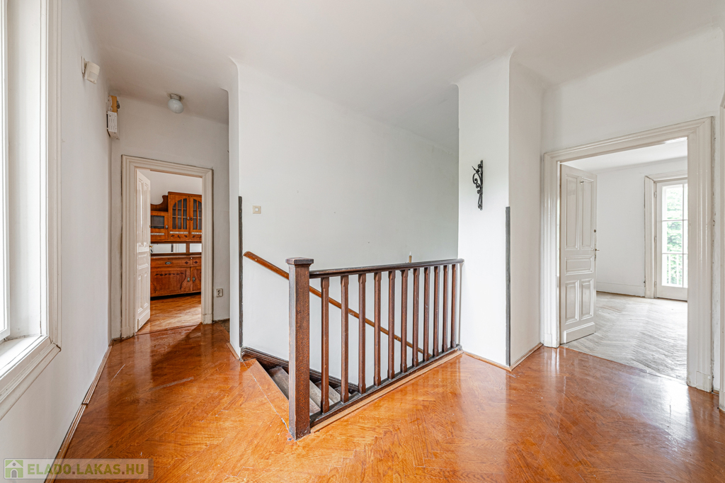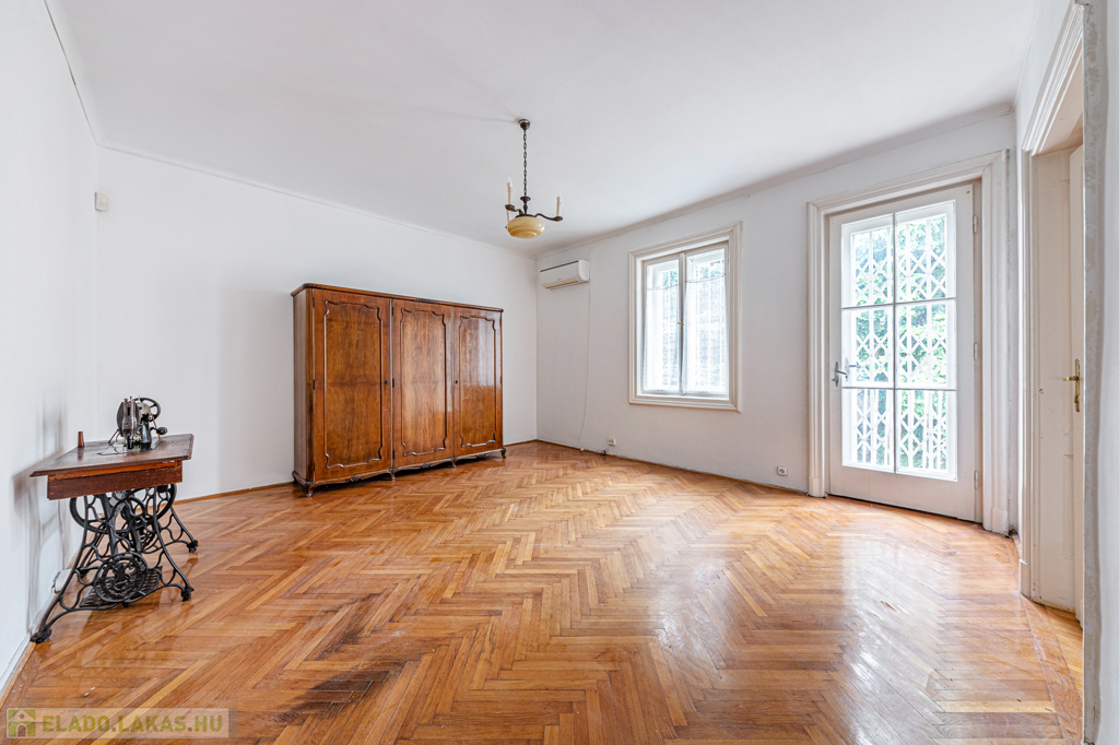 Az emeleten elhelyezkedő lakásba - egy kényelmes méretű fogadótérből induló - impozáns tömörfa lépcső vezet, helyiségeire jellemző a tágasság, a benapozottság, mindhárom jól bútorozható, tömörfa parkettás, klimatizált szobájából közvetlen kapcsolat nyílik a kellemes, délnyugati tájolású, 40 nm-es teraszra. Az eredeti külső- és beltéri tömörfa nyílászárókat megőrizték jó állapotukban, az ablakok, erkélyajtók zsalugáteres árnyékolása is gondoskodik a korabeli hangulatról. A lakás radiátoros fűtését gázkazán biztosítja. A 116 nm-es, nagyvonalú térelosztású lakáshoz tartozik a teljes lakóterülete feletti, ~100-nm-es, beépíthető tetőtér, lehetőséget nyújtva az élettér megnövelésére.