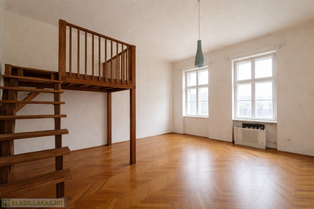In the heart of District I, Krisztinaváros–Váralja, on the corner of Logodi and Mikó Street, near the Gránit steps, a 3rd-floor, 1-room apartment is for sale in an elevator building, overlooking the inner courtyards.