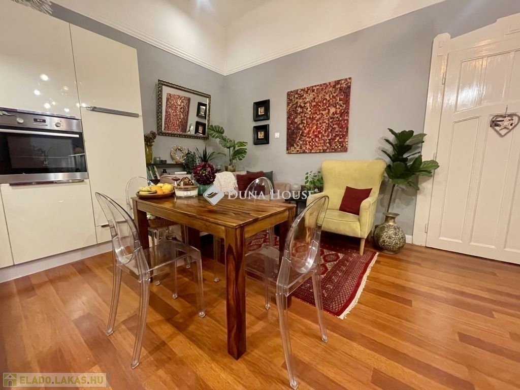 Eladó egy igényesen kialakított, meghitt hangulatú, 3 szobás lakás a II. kerületben, a Szász Károly utcábanA Szász Károly utca egyik frissen felújított belső udvarú társasházának első emeletén kínálunk megvételre egy 59 nm-es, különleges atmoszférájú, gondosan átalakított és ízlésesen berendezett otthont.A lakás a körfolyosóról nyílik, a bejárat melletti területen paddal, asztallal ellátott kiülőt alakítottak, ahol kellemes megpihenni, tökéletes helyszín reggeli kávéhoz vagy csendes esti kikapcsolódáshoz, az ablakok belső udvarra néznek, de a kialakítás miatt nincs átjárás előttük.A lakás 2018-ban teljeskörű felújítást kapott, amely során az eredeti két szobából átgondolt tervezéssel három funkcionális szobát alakítottak ki:- egy galériázott helyiséget, amely kreatív térkihasználásával külön karaktert kapott,- egy gardróbbal ellátott hálószobát, amely ideális tárolási lehetőséget kínál.A nappali szoba, konyha és étkező egy légtérben helyezkedik el, harmonikus kialakítással és otthonos atmoszférával. A lakás hangulatát a meghitt, gondosan összehangolt enteriőr teremti meg. A fűtést kedvező fenntartású gázkonvektorok biztosítják.A környék a II. kerületre jellemző módon népszerű, rendezett és értékálló, kiváló közlekedéssel és infrastruktúrával. A csendes, rendezett utcákat a kerületre jellemző kifinomult hangulat és biztonságos környezet jellemzi.Néhány perc sétára megtalálható minden, ami a mindennapokhoz elengedhetetlen, gyógyszertár, rendelőintézet, drogéria, hangulatos kávézók, kis éttermek, pékségek és élelmiszerüzletek, amelyek hozzájárulnak a környék különleges mindennapi életérzéséhez. A közelben több felújított, karakteres épület, parkosított rész és fás utca teszi vonzóvá a környezetet.Közlekedés szempontjából is kiváló választás: rövid sétával elérhetők villamos- és buszjáratok, a Margit körút és a Széll Kálmán tér közelsége pedig rendkívül kényelmessé teszi a városon belüli közlekedést. A zöldterületek kedvelői számára külön előny a Margit-sziget, a Millenáris Park és több közeli közkert gyors elérhetősége.A környék összességében olyan életminőséget és értékállóságot kínál, amely kiemelkedő a budapesti ingatlanpiacon.Ez az ingatlan kitűnő választás azoknak, akik egy igényesen felújított, kreatívan kialakított, különleges hangulatú, azonnal költözhető otthont keresnek Budapest egyik legkedveltebb városrészében.Ha az ingatlan felkeltette érdeklődését, keressen bizalommal.