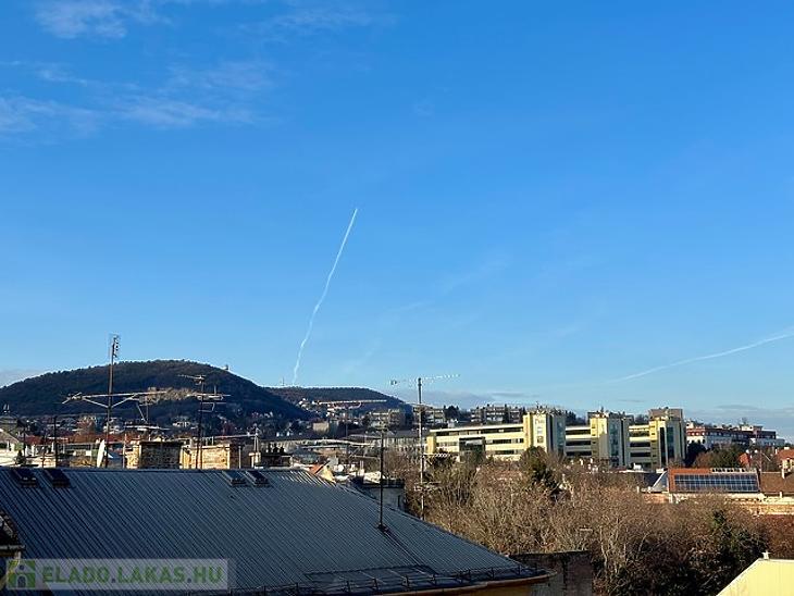 Az ingatlan elrendezése praktikus és kényelmes: két különnyíló szoba, konyha kamrával, fürdőszoba külön WC-vel, valamint egy 5 m²-es, nyugati fekvésű erkély tartozik hozzá, amely lenyűgöző panorámát nyújt a Hármashatár-hegyre.