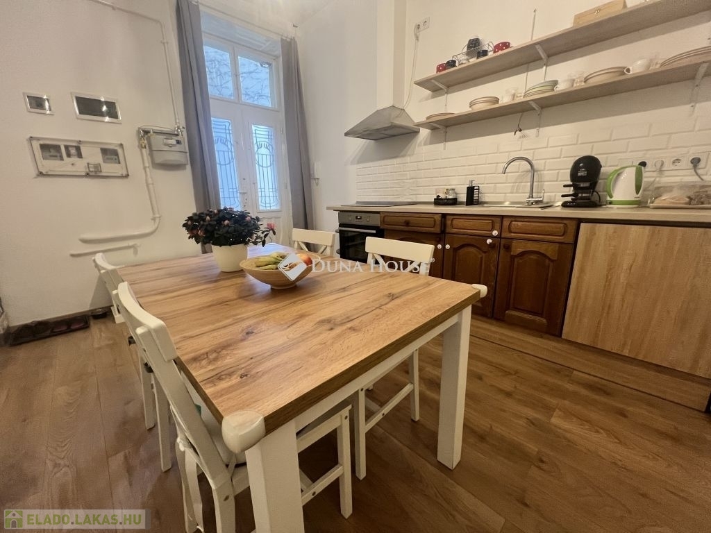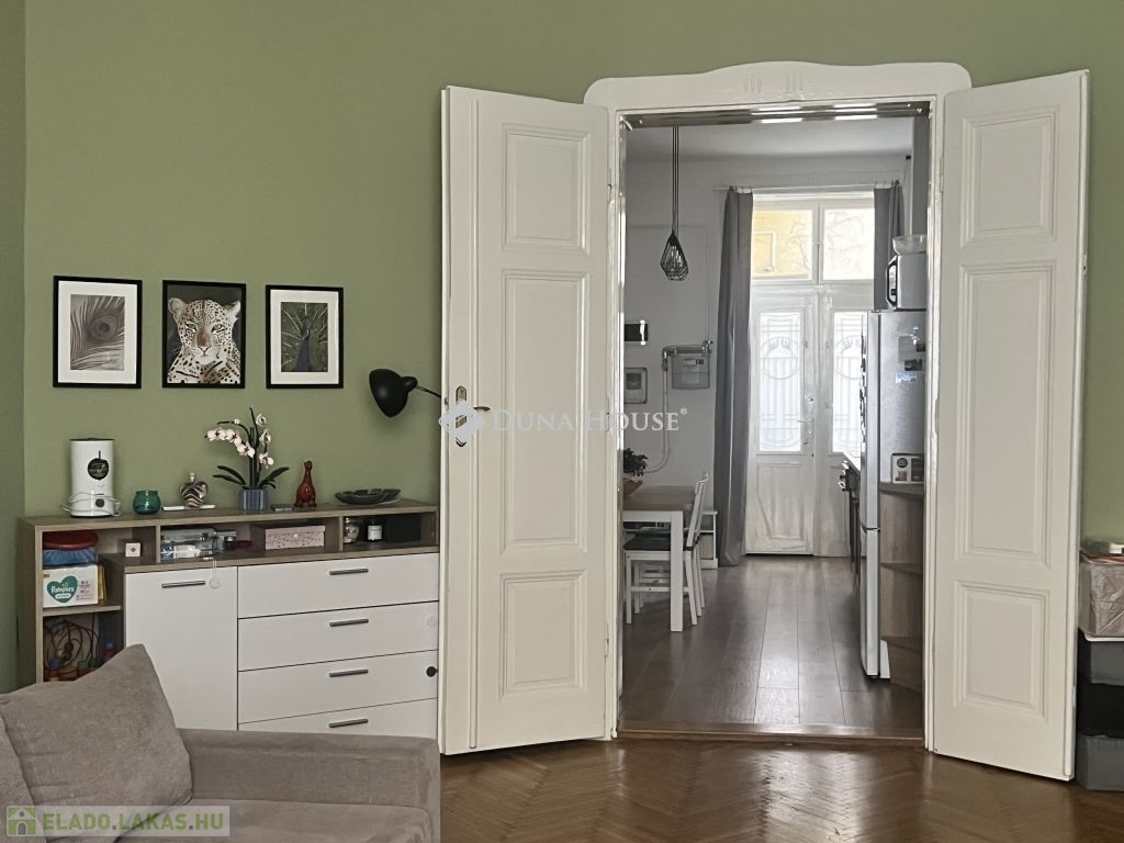 Felújított nagypolgári elegancia a Frankel Leó úton Eladásra kínálunk a II. kerület egyik legkeresettebb részén, a méltán népszerű Frankel Leó úton egy kifogástalan állapotú, 1. emeleti, nagypolgári téglalakást. Ez az otthon a klasszikus budai életérzést ötvözi a modern technikai megoldásokkal.Műszaki tartalom Amire nem kell költenie:Az ingatlan 5 éve teljes körű műszaki és esztétikai megújuláson esett át:Vezetékek: Komplett villany- és vízvezeték csere.Nyílászárók: 2024-ben beépített, modern, kiváló szigetelésű műanyag ablakok.Fűtés: Energiatakarékos Baxi kondenzációs gázkazán új radiátorokkal.Hűtés-fűtés: 2 db prémium Cooper & Hunter klíma gondoskodik a tökéletes hőmérsékletről minden évszakban.Mérés: Minden közmű (víz, gáz, villany) egyedi mérőóra alapján fizetendő.Praktikus és tágas terek:A lakás elosztása kiváló, a 2025-ös belső átalakításnak köszönhetően még élhetőbbé vált:Nappali: Impozáns, kb. 30 m²-es közösségi tér.Konyha: Hatalmas, ~20 m²-es konyha-étkező, ahol a főzés élmény.Hálószobák: A belső szoba okos megosztásával (szigetelt gipszkarton falazattal) két külön bejáratú, csendes hálórész jött létre.Extrák: Tágas fürdőszoba, külön WC, kamra és egy saját pince is tartozik az ingatlanhoz.A társasház és a környezet:A lakás egy liftes, tiszta és rendezett, gondozott társasházban található. Az ingatlan osztatlan közös tulajdon, de rendelkezik ügyvéd által ellenjegyzett, minden jogutódra kiterjedő használati megállapodással, így hitelezhető és biztonságosan megvásárolható.Kiváló elhelyezkedés: Duna-part, Margit-sziget, Lukács fürdő sétatávolságra.Befektetésnek is tökéletes a környék presztízse és a lakás állapota miatt.Ne maradjon le erről a különleges lehetőségről! Várom hívását a hét bármely napján!