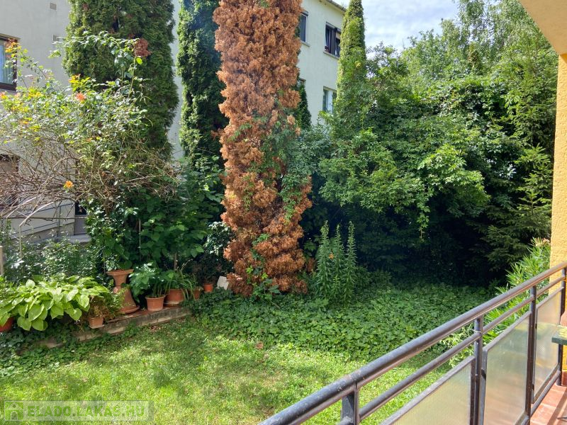 A loggiábol közvetlenül pár lépcsőn lejutunk a saját kertrészbe.