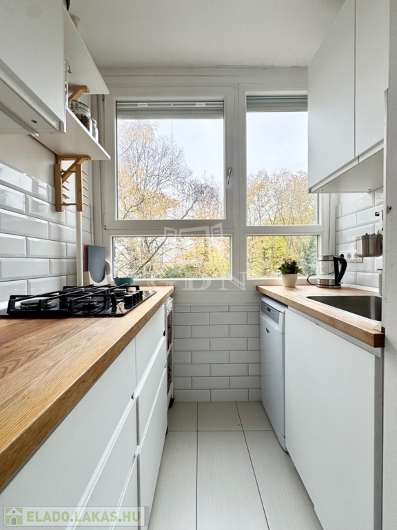 A lakásban a felújítás során: új külső- és belső nyílászárók, vízvezeték, burkolatok, beépített gépek, illetve praktikus és sok tárolási lehetőséget biztosító bútorok kerültek kialakításra.