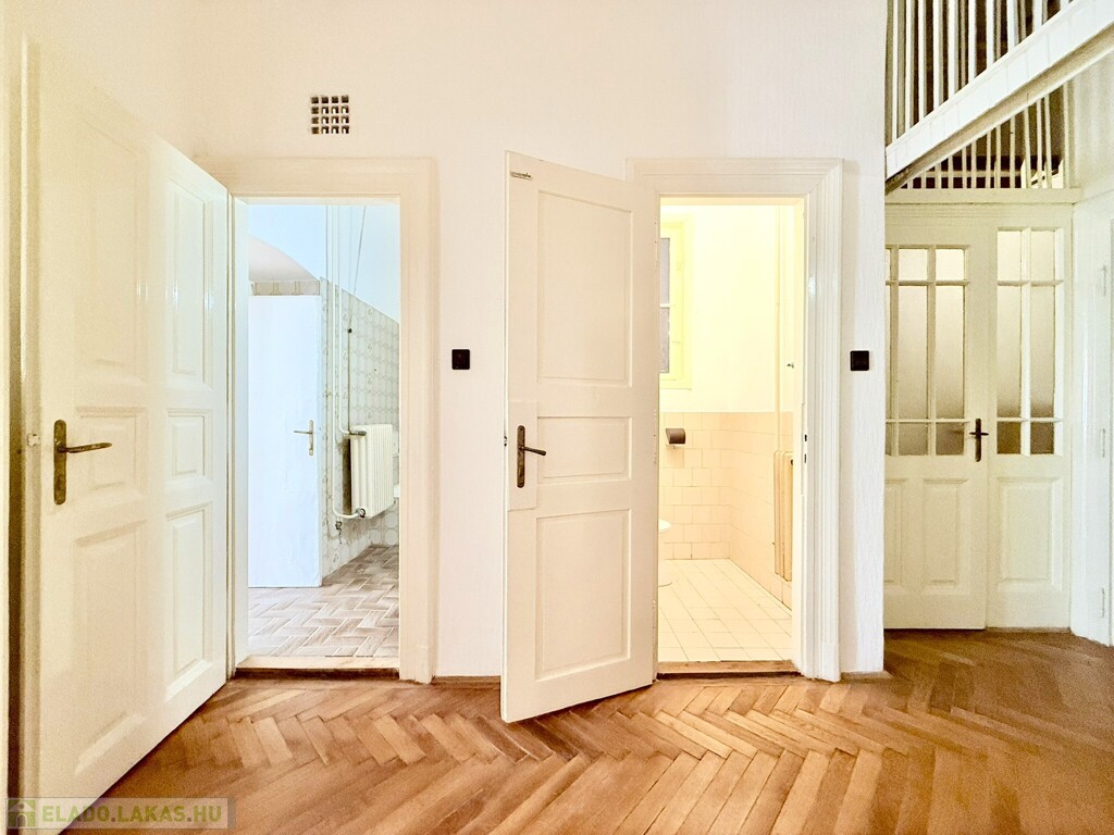 Az eredeti faparkettája, a nagyméretű, fa spaletta árnyékolókkal rendelkező ablakai, eredeti kilincsei mind harmóniában vannak, így az esztétikai felújítás után egy korhű ám mégis modern otthon varázsolható belőle.