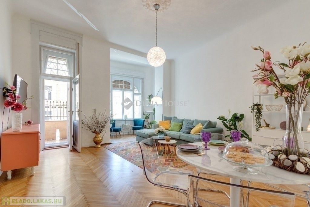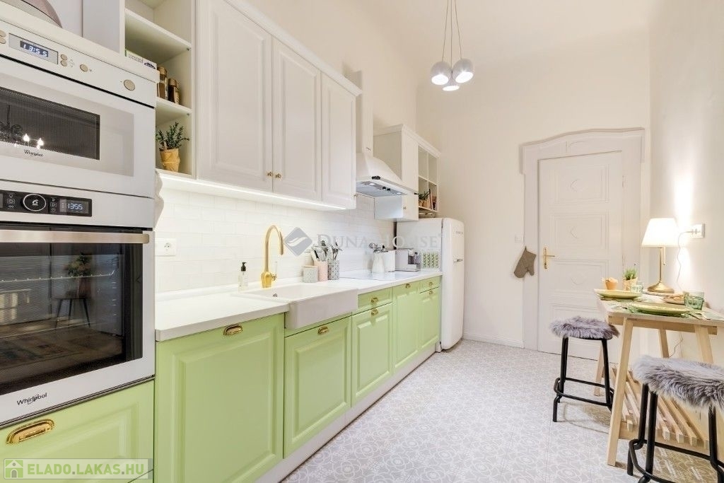 Városmajor és a Mammut szomszédságában SZÉP, PATINÁS ÉPÜLET magasföldszintjén, 115 nm-es, ERKÉLYES, csendes OTTHON eladó!Kiváló belsőépítész tervei szerint felújított lakás, amelyet a tágas terek, napfény, hatalmas nappali, gyönyörű parketta, egyedülálló design konyha külön kamrával, 2 külön hálószoba, ruhaliftes gardróbszoba, pihenősarok, saját erkély és egy kényelmes fürdőszoba jellemez.Az elegáns nagypolgári értékeket a fiatalos modernitással tökéletesen ötvöző lakás csodaszép otthon és tökéletes választás lehet a környéken lakást keresőknek.A rendkívül igényes, kifejezetten erre a lakásra tervezett design bútorok, az egyedi terek remek kihasználása, a legkiválóbb luxus háztartási gépek vagy akár a frissen kialakított, applikációval távolról is vezérelhető legmodernebb fűtésrendszer mind olyan luxuskörnyezetet teremtenek, amely igazi unikum a hazai ingatlanpiacon. A lakáshoz tartozik még egy 6 m2-es, hangulatos fedett terasz, amelyre a nappaliból tudunk kijutni.A csodaszép nagypolgári otthon rendkívüli előnye továbbá a kiváló lokáció: az utca végén Buda sétálóutcája, a Lövőház utca és a Millenáris Park, szomszédban a Városmajor, de séta távolságra található a Fény utcai piac, minden tömegközlekedési eszköz és a Mammut bevásárlóközpont.Ami igazán különlegessé teszi azonban, hogy a központi elhelyezkedés minden előnyét élvezhetjük, miközben a lakás teljesen csendes, nyugodt, kiváló lakóközösséggel és biztonsággal. A közelben sok nemzetközi iskola található (AISB, SEK, BBIS, stb...).Ilyen adottságokkal és ilyen állapotban ezen a környéken biztosan nem talál hasonló paraméterekkel rendelkező lakást.Jöjjön és nézze meg ezt a fantasztikus ingatlant!