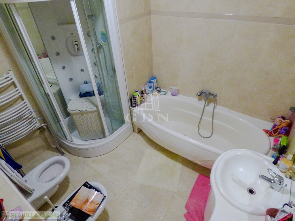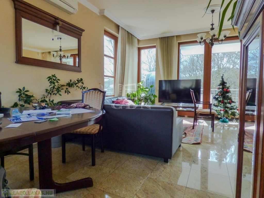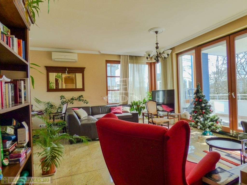 II. kerületben, az EURODOMB LAKÓPARKBAN, 2003-ban épült, rendezett, karbantartott, portaszolgálatos (0-24), kamerás, liftes, szigetelt, tégla építésű társasházban, I. emeleti, 94 nm-es, 3 szobás, jó állapotú, gáz cirkó fűtésű (padlófűtés), hűtő - fűtő klímával felszerelt, fa thermo nyílászárós, Dél - Keleti tájolású, rendkívül világos, csendes, hegyekre néző, NAGY ERKÉLYES (25 nm), rugalmasan birtokba vehető, TEHERMENTES lakás eladó.