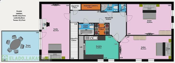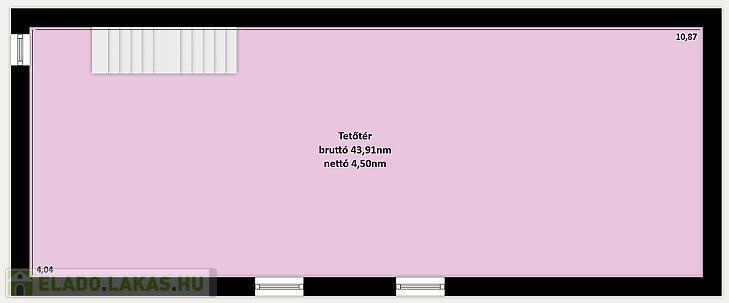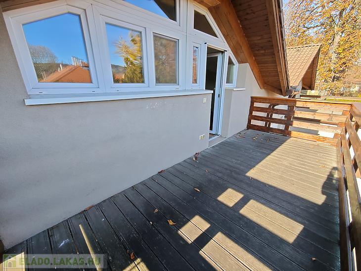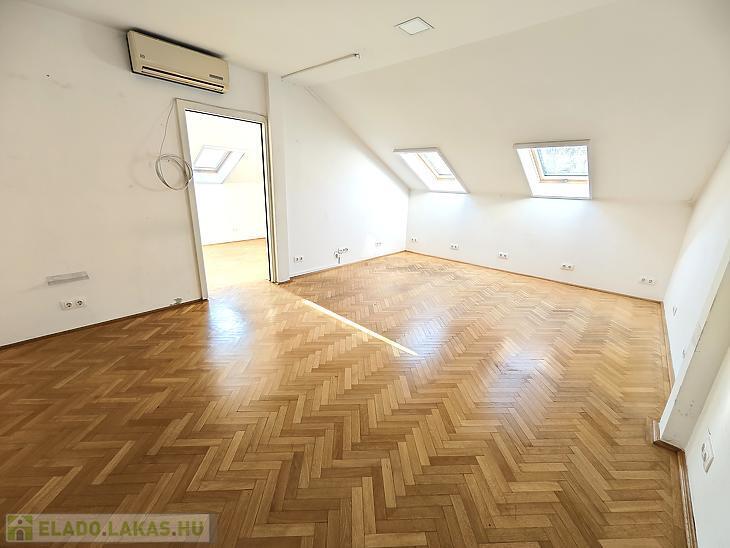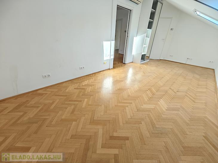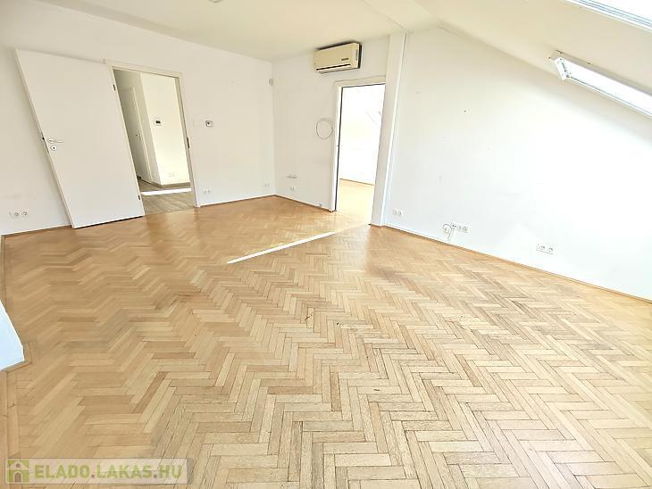 - Tetőtérben bruttó 106nm-es (nettó 77nm) 3 szobás, étkezőkonyhás lakás, melyhez tartozik egy 19nm-es terasz kilátással az Apáthy-sziklára