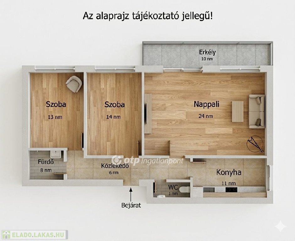 - Tájolás: délnyugati