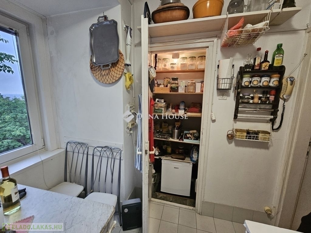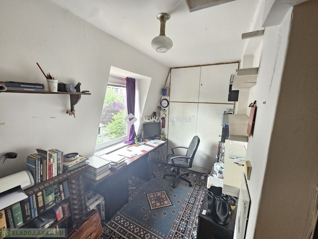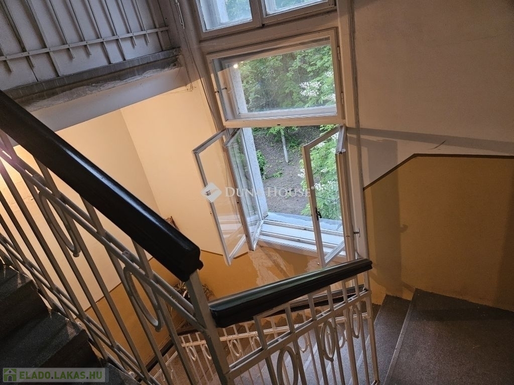 DUNÁRA NÉZŐ PANORÁMÁVAL rendelkező, különleges lakás eladó Rózsadombon!Az 1935-ben épült VILLAÉPÜLET 2. emeletén, a legfelső szinten (de nem tetőtérben!) található ez a - tulajdoni lap szerint 77, a valóságban - 82 négyzetméteres hatalmas nappali + 3 hálószobás lakás. Maga a lakás az 1970-es években került kialakításra és ezen az emeleten nincs is több lakás.A tágas, világos nappaliban található 3 különleges, beépített erkély-szerű építészeti struktúra, amik olvasósarokká, vagy mini télikertekké alakíthatóak. Ebben a helyiségben 3 nagy ablak található, amelyekből csodás a kilátás! A bájos kis konyhából pedig egyenesen a Dunára lehet lelátni a Parlamenttel a háttérben. Még a fürdőszoba ablaka is a csendes, zöld környékre néz!A három hálószoba az utca felé néz, de egyáltalán nem zajos egyrészt azért, mert a kerítéstől jóval beljebb helyezkedik el az épület, másrészt mert egészen kicsi az utca autóforglama. A külön nyíló 3 hálószobát rusztikus tartógerendák teszik még hangulatosabbá.Egy szép, fákkal teli, közös belső kerttel is rendelkezik a ház!Parkolás az utcán megoldható, szabad helyek mindig vannak.A környéken jár a 191-es busz, de gyalog negyed órára már a 17/19/41-es villamosokra is felszállhatunk, amikkel hamar a Széll Kálmán térre, Déli pályaudvarra érhetünk.