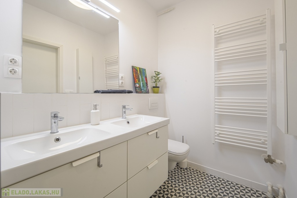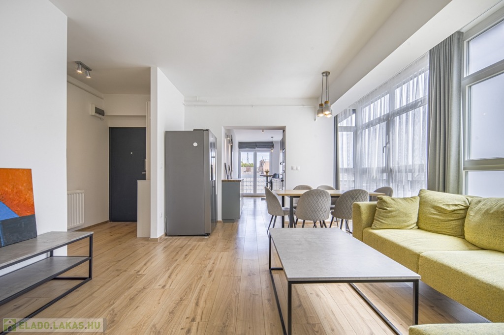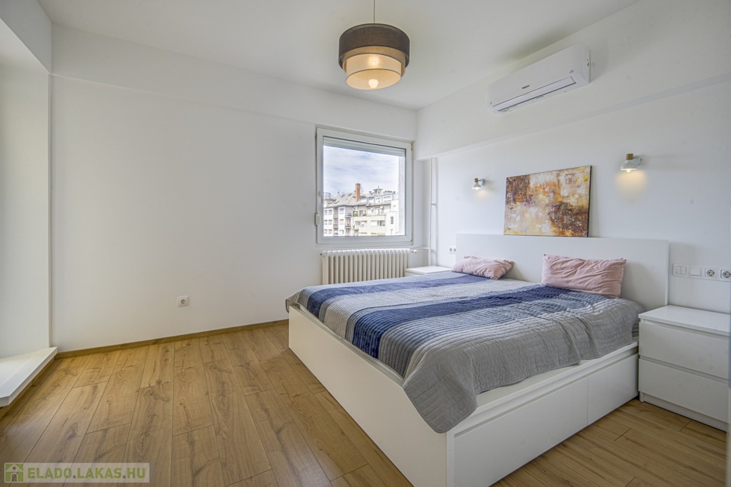 A II. kerületben, Viziváros szélén, a Dunától alig 3 percnyire eladó egy részben a Parlamentre és a Szabadság helyre panorámás, belsőépítész által áttervezett, nappali + 2 hálós, rendkívül világos, 76 m2-es, duplaerkélyes, legfelső, 6. emeleti lakás rendezett, zárt lépcsőházas, liftes társasházban, parkolási lehetőséggel.