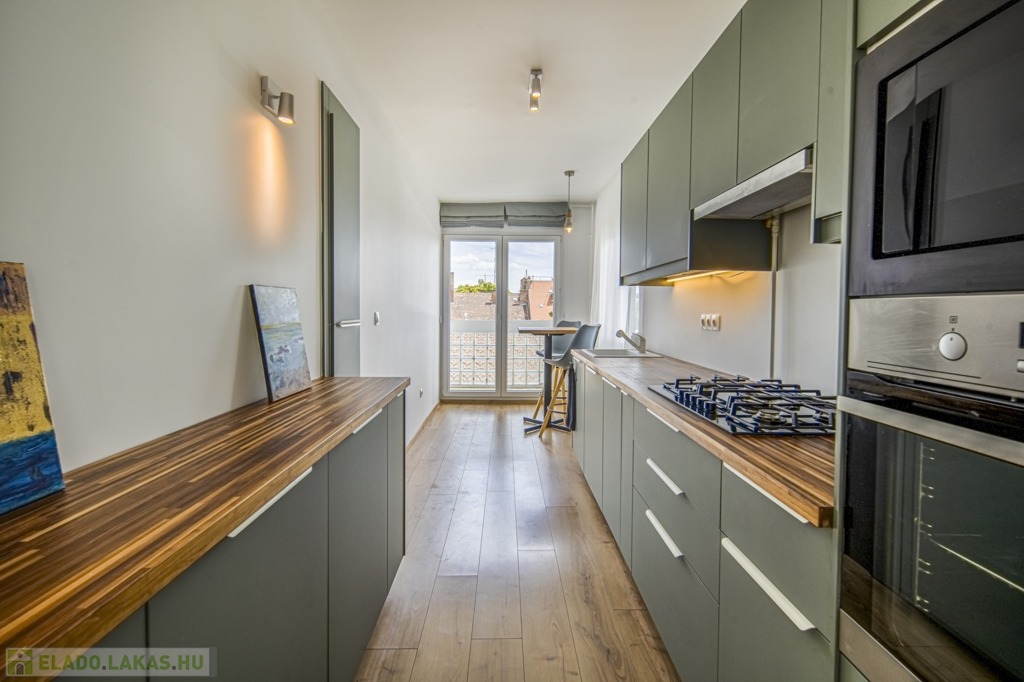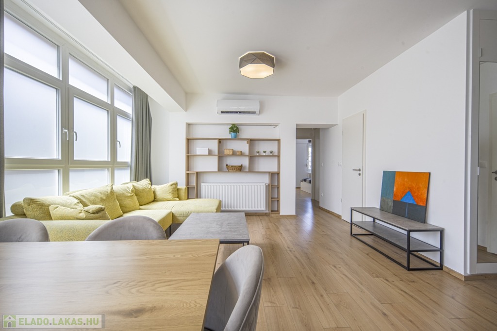 Az ingatlan felújítása mindenre kiterjedő volt: az összes vezeték, cső és nyílászáró, burkolatok, szekrények és konyha is cserélve lett, a hálószobák redőnyösek, a déli fekvésű nappaliban sötétítőfüggöny található. A konyha mosogatógéppel szerelt, a hűtőnek saját vízkiállás lett kialakítva a jégkockakészítéshez és a hidegvízhez.
