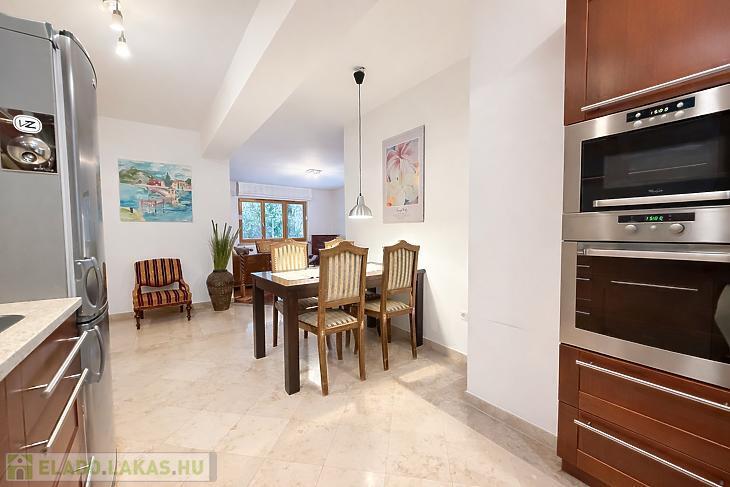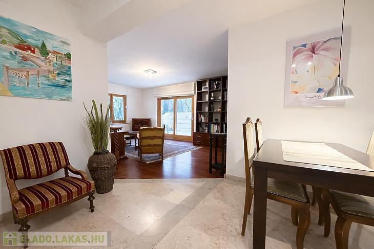 Eladásra kínálunk a II. kerület, Rózsadomb egyik nyugodt, zöldövezeti mellékutcájában egy 75 m²-es, 3 szobás (2 hálószoba + nappali), földszinti, 2006-ban teljeskörűen felújított lakást, egy zárt, rendezett társasházban.