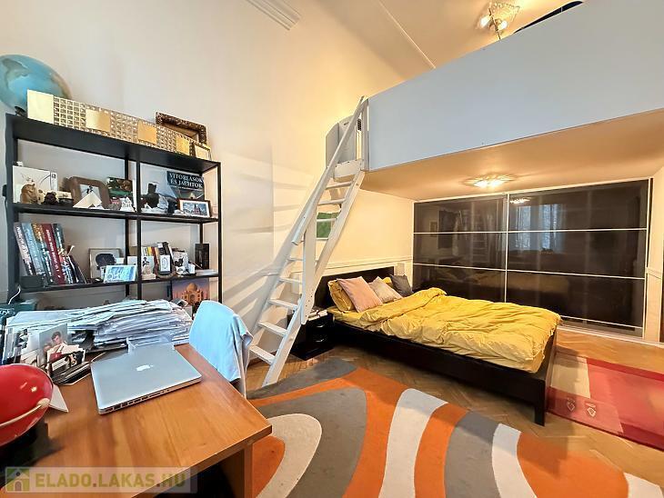 Eladó egy 101 nm-es, jó állapotú lakás a Frankel Leó út közkedvelt, sétáló szakaszán, amely közvetlenül a nemrég teljesen megújított parkra néz. Az ingatlan különlegessége, hogy az egyik szobában egy 10 nm-es galéria is helyet kapott, amely remekül használható hálóként, dolgozószobaként vagy akár olvasósarokként.