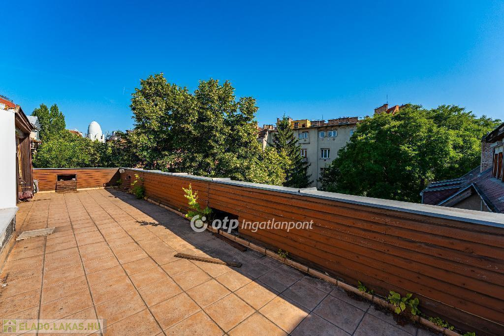A 175 nm-es, belső kétszintes lakás jelenleg is jó beosztású. Világos és csendes, nagyvonalú terekkel rendelkező, jelenleg 3,5 szobás otthon. Jó alaprajzának köszönhetően több átalakítási lehetőség is rejlik a lakásban, amely amerikai konyhás nappali + 3-4 hálószobás lakássá is alakítható. Az ablakok a ház szép és csendes kertje felé néznek, DNY-i és ÉK-i tájolásúak. Az ingatlan egy 35 nm-es panorámás, tetőtéri terasszal rendelkezik, amely felújítás után az ingatlan egyik ékessége lesz.