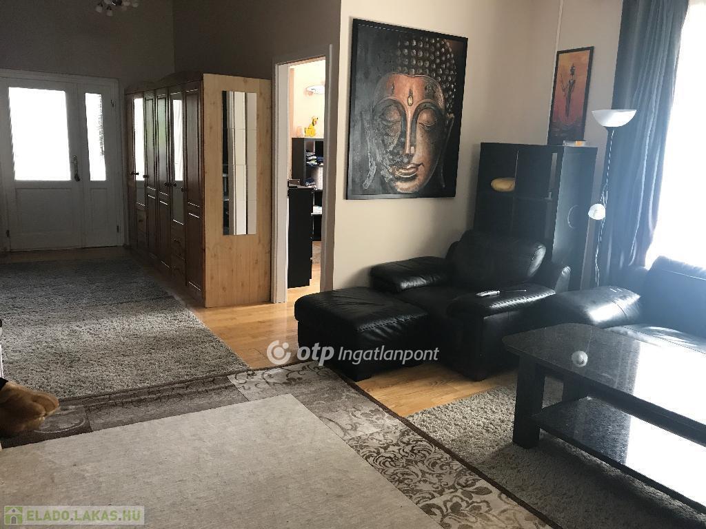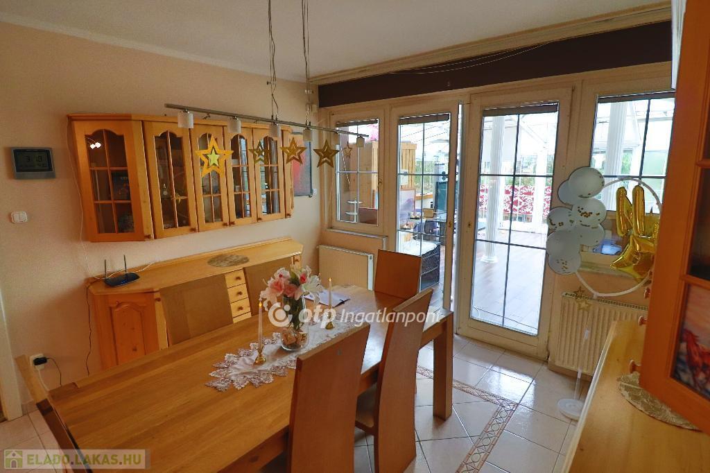 A békés kertvárosi zöldövezetben elhelyezkedő 1. emeleti 4 szobás lakás dupla nappalival, tágas tömör fenyőfa konyha-étkezővel, három hálószobával, nagyméretű fürdőszobával (fürdőkáddal és zuhanyzóval), külön WC-vel és tárolóval rendelkezik. Az ingatlanhoz tartozik egy 50 nm-es télikert, finn szaunával, egy 20 nm-es terasz és egy 8 nm-es fedett erkély. A lakás azonnal költözhető, igényesen bútorozott, gépesített, szép állapotú.