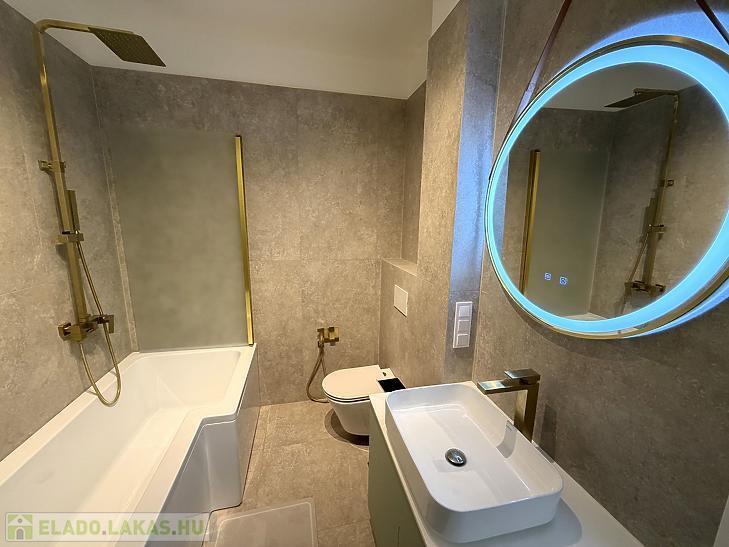Az ingatlan fűtéséről egy Bosch kondenzációs kazán gondoskodik, a felső szinten padlófűtéssel, az alsó szinten pedig radiátoros fűtéssel. Szintén bekerült egy ultrahangos vízlágyító is. Mindkét szinten prémium minőségű burkolatok és szaniterek kerültek kiválasztásra és le-, illetve behelyezésre.