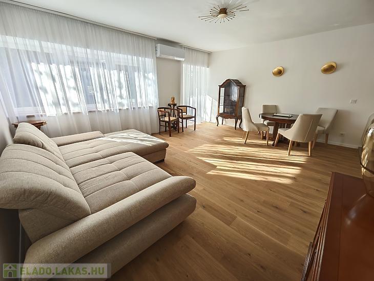 Pasaréti tértől pár percre, egyirányú kis mellékutcában, 8 lakásos házban eladó egy belső 2 szintes frissen, magas színvonalon felújított, DNY-i és DK-i fekvésű lakás.