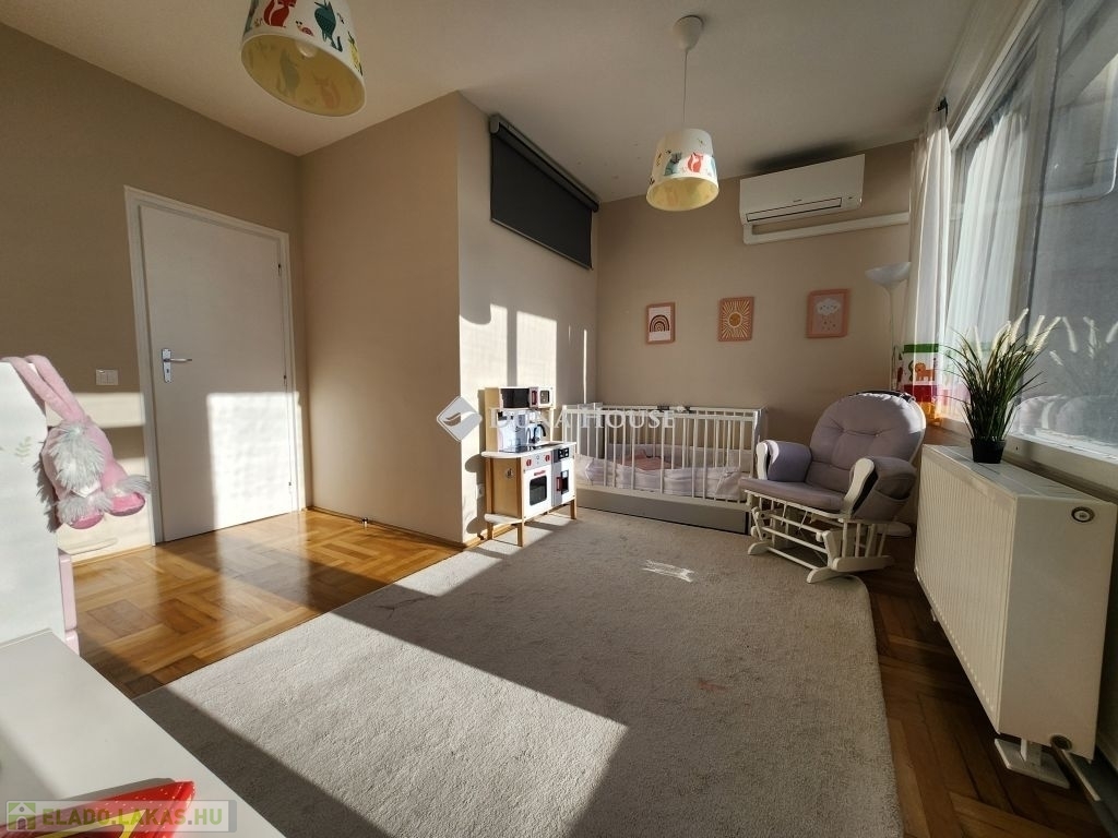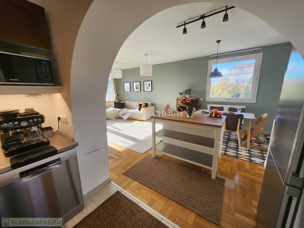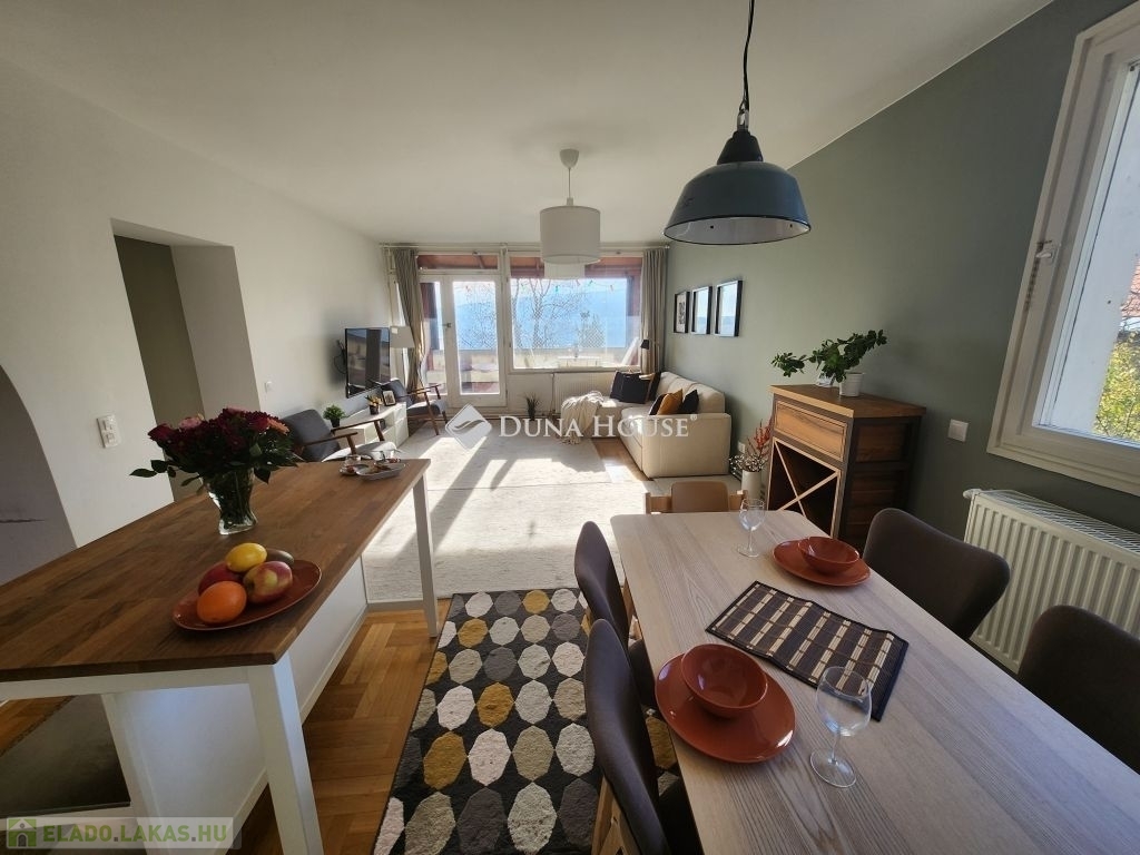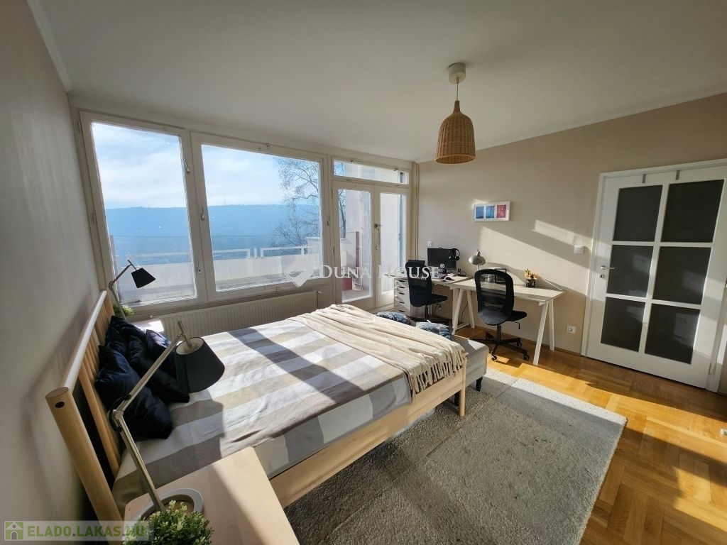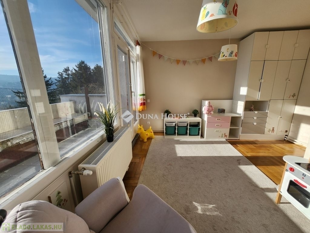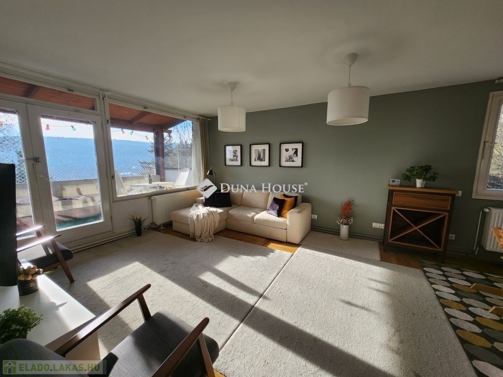 Belső RÓZSADOMB imádói - FIGYELEM!Eladásra kínálunk egy különleges adottságú, napfényes 4 szobás, napfényes, második emeleti otthont Budapest II. kerületében, amelyet a gyönyörű, zavartalan panoráma és a napfényben úszó terek tesznek igazán különlegessé.A lakás adottságaiA 112 nm-es nettó lakótér praktikus és élhető kialakítással rendelkezik. Három hálószoba, valamint egy egybefüggő, világos nappaliétkezőkonyha tér biztosítja a kényelmet és a tágas mindennapokat. A lakás külön fürdőszobát és külön mosdót is kínál, ami tovább növeli a funkcionalitást. Minden szobából saját erkély nyílik, ahonnan lenyűgöző panoráma tárul a szem elé. Déli fekvése miatt az otthon egész nap természetes fényben gazdag, amely meleg, befogadó hangulatot teremt.A jelenlegi elrendezés két lakás egybenyitásával jött létre 2022-ben, amikor részleges felújítás is történt.Az épületA ház 1979-ben épült, kétszintes, összesen kilenc lakás található benne, így csendes, családias légkört biztosít. A lakáshoz két külön tároló tartozik, amelyek nagyban megkönnyítik a mindennapi tárolási feladatokat. A közös költség 51.000 Ft, amely a felújítási alapot is magában foglalja.KörnyékAz ingatlan a II. kerület nyugodt, zöldövezeti részén található, Törökvészen. A környék rendezett utcái, a tiszta levegő és a természet közelsége kellemes lakókörnyezetet teremtenek. A mindennapi élethez szükséges intézmények bevásárlási lehetőségek, iskolák, sport- és rekreációs helyszínek könnyen elérhetők, és a közlekedés is kényelmesen megoldható. A lokáció azok számára különösen vonzó, akik értékelik a csendesebb budai életérzést, miközben gyorsan elérhető számukra a város nyüzsgése.Az ingatlan ideális választás mindazok számára, akik tágas, átgondolt elrendezésű és barátságos atmoszférájú otthont keresnek a II. kerület egyik kedvelt, zöldövezeti részén.További részletekért valamint megtekintésért keressen bizalommal, akár hétvégén is!