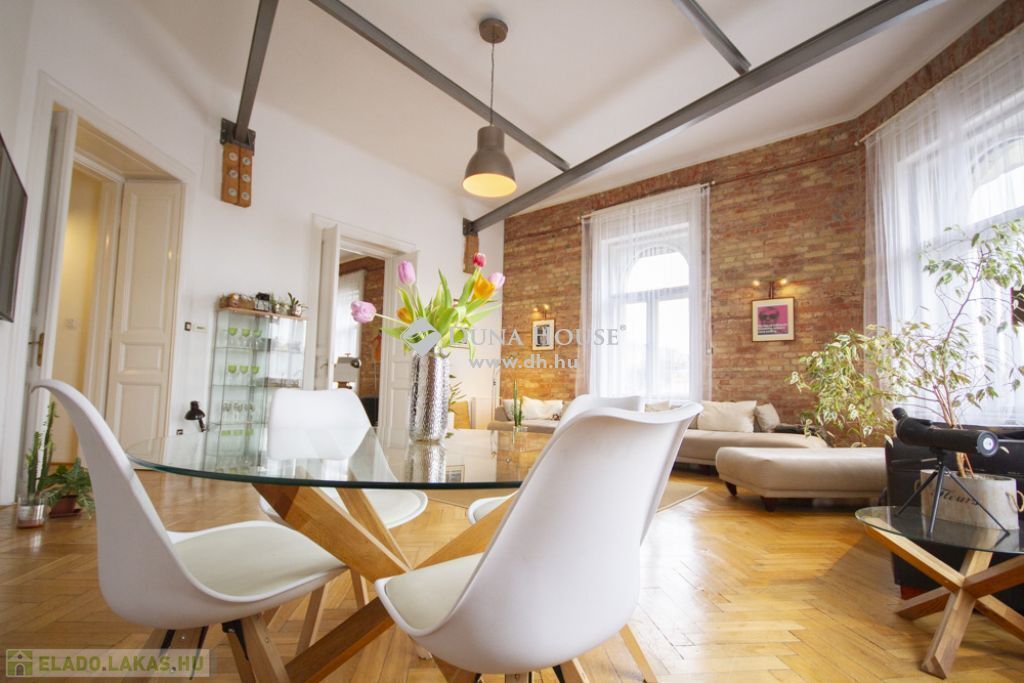 Ennek az ízlésesen felújított nagypolgári lakásnak minden ablakából panoráma nyílik a Dunára, a Margit-hídra, a Parlamentre.